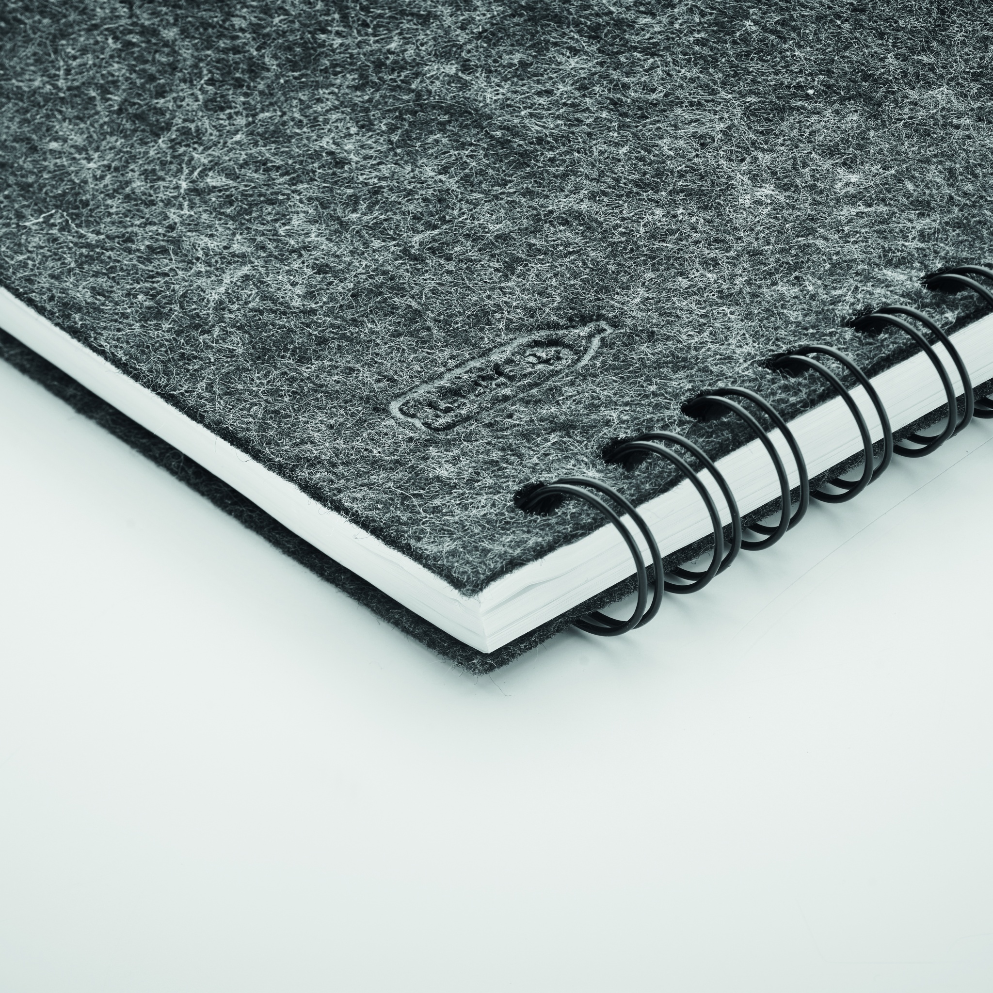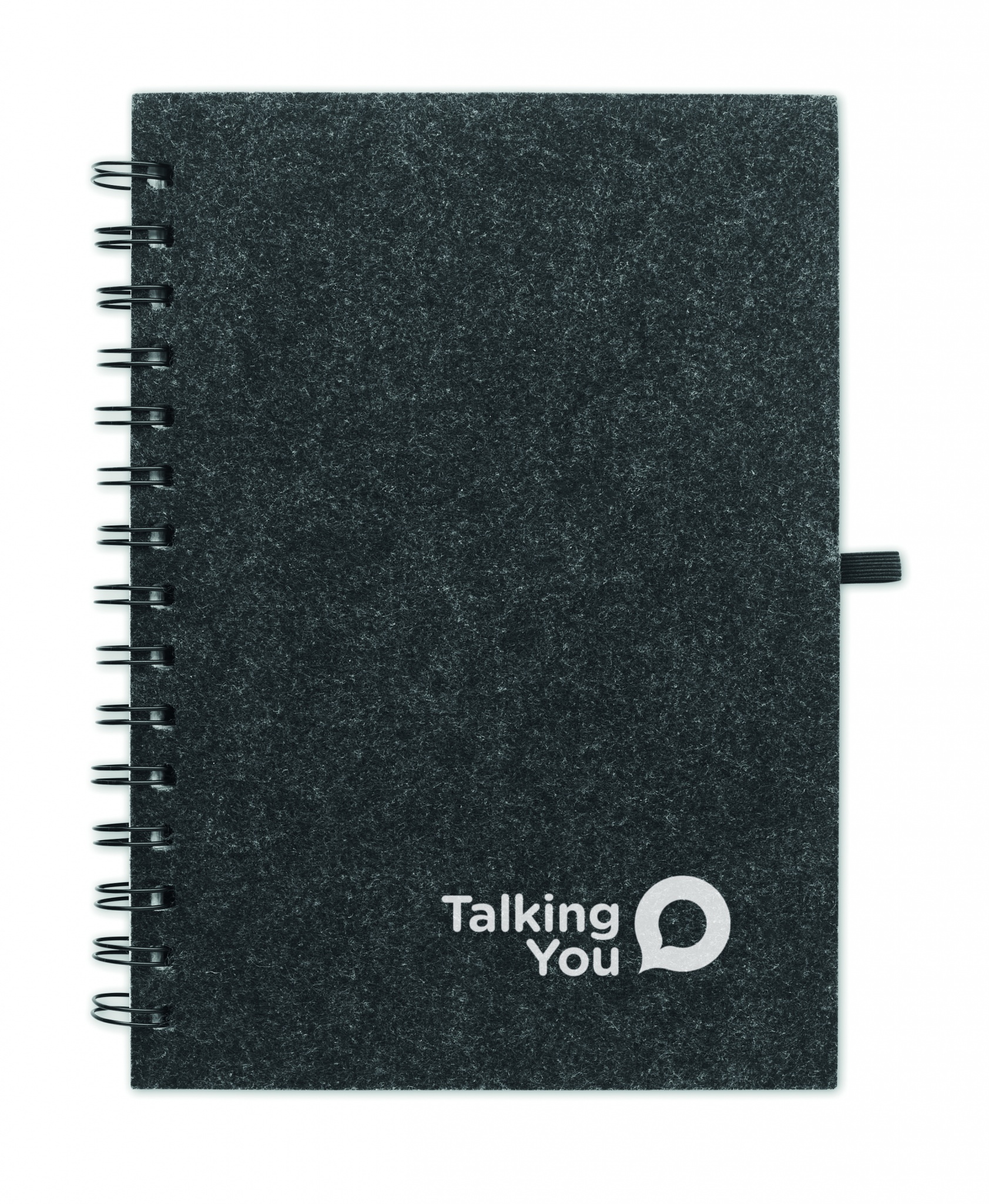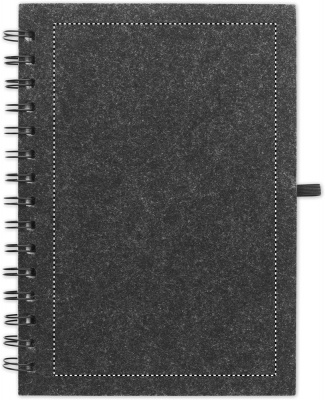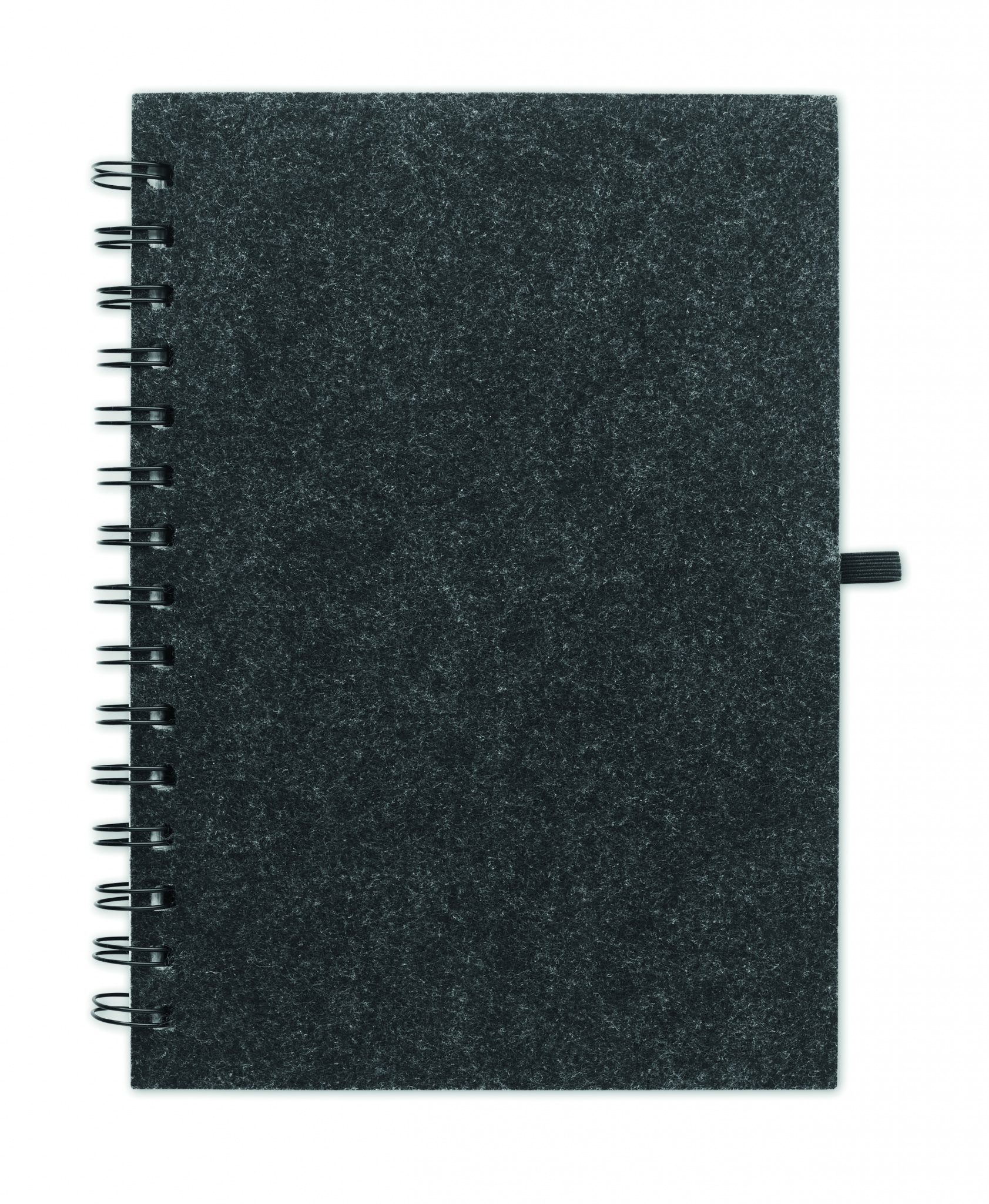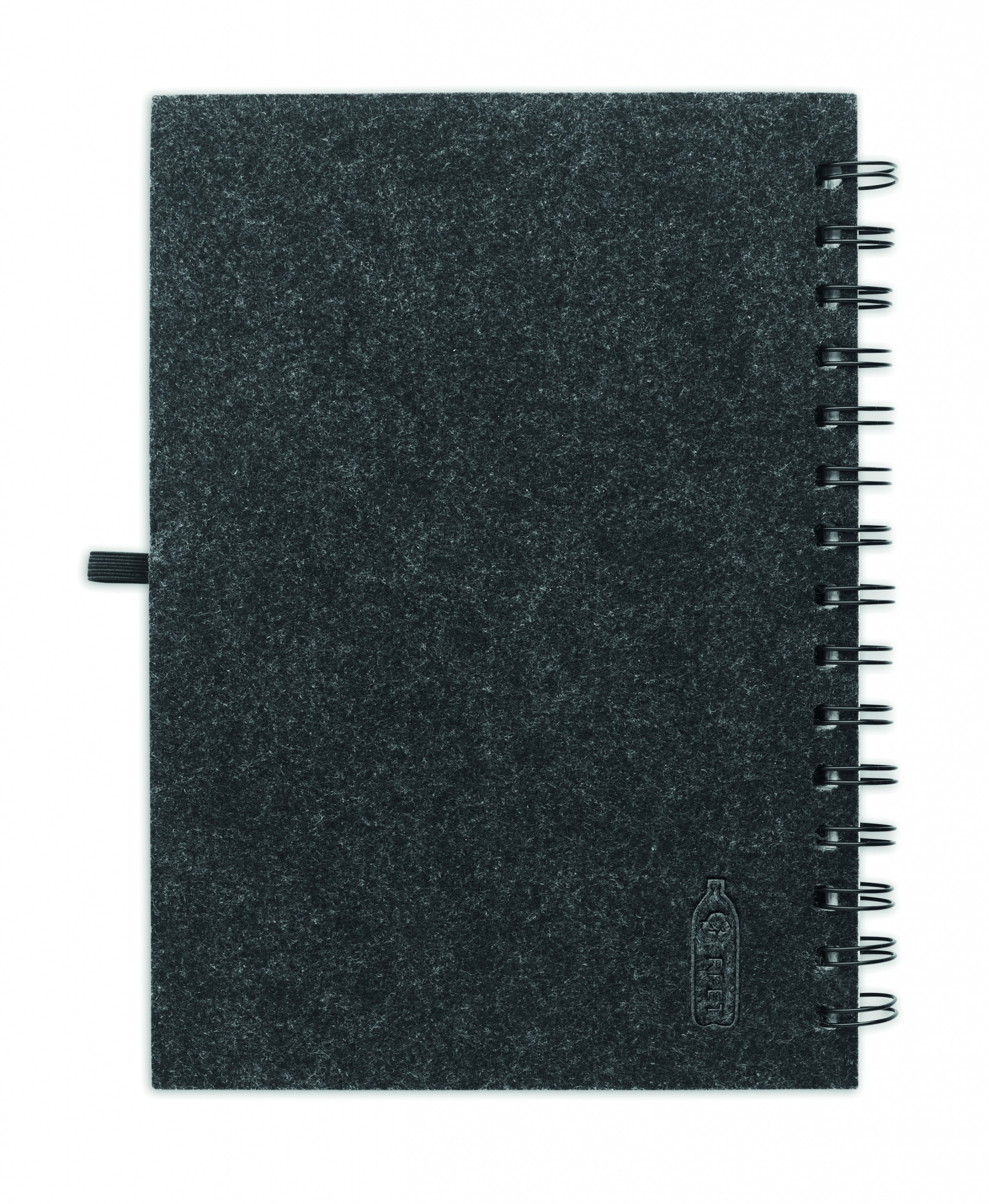 Блокнот A5 RPET в фетровой обложке. Двухсторонний переплет, 160 линованных страниц из вторичного сырья плотностью 70 гр/м² (80 листов) с эластичным держателем для ручки.
