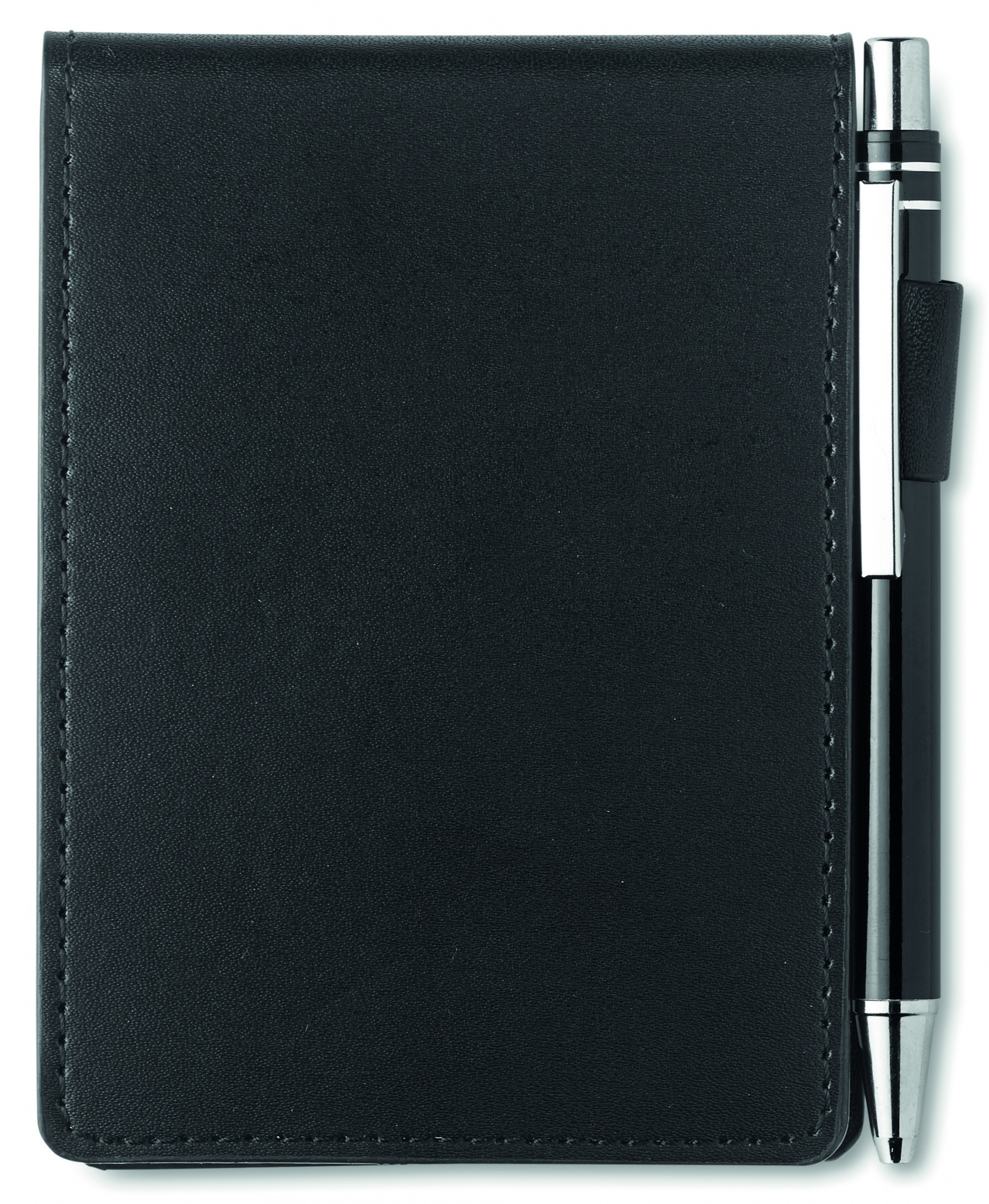 Блокнот формата А7 с 60 отрывными листами в футляре из кожзаменителя с ручкой.