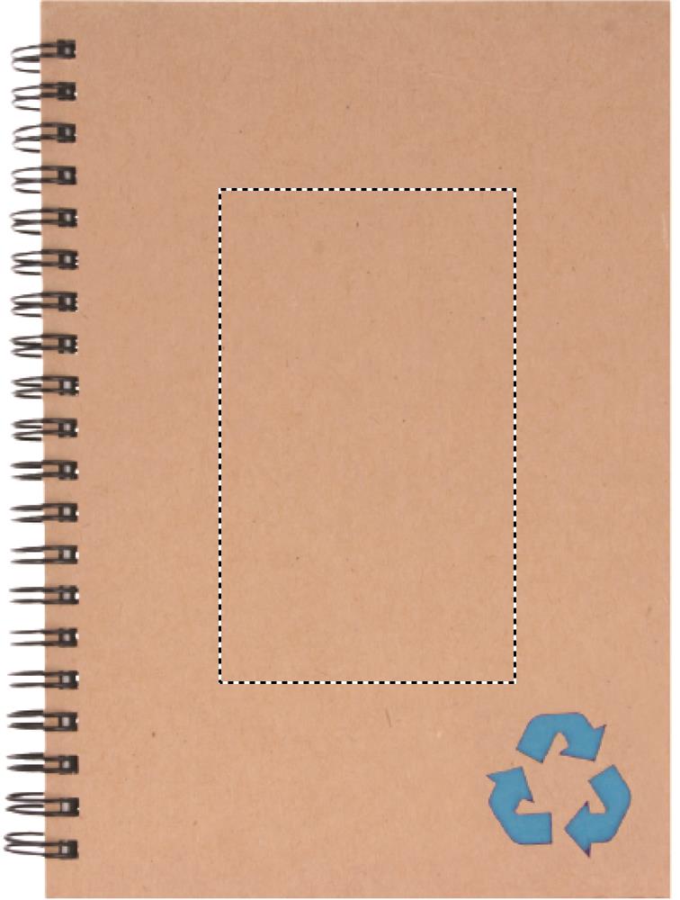 Блокнот на кольцах на 70 листов. Обложка из переработанного картона. Блок бумаги- это каменная бумага. Изготовлена из смеси натурального камня, карбоната кальция, известняка и полиэтилена высокой плотности.