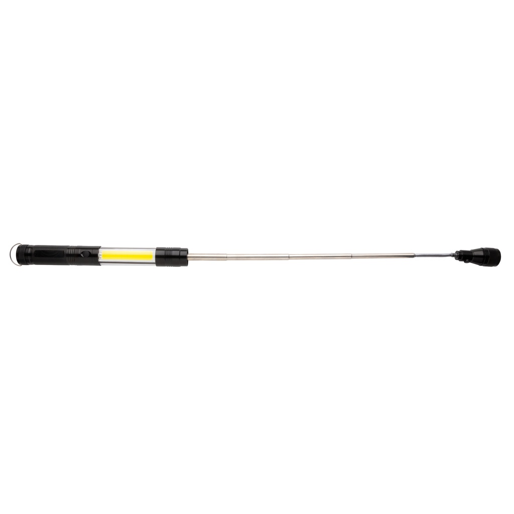 Идеальный рабочий фонарь для любых нужд, этот двойной магнитный светодиодный рабочий фонарь отлично подходит для крепления к любой металлической поверхности для оптимального освещения. Этот алюминиевый фонарик позволяет вам удлиняться от его обычного размера 26 см до 64 см, что позволяет вам поднимать предметы, которые застряли в труднодоступных и труднодоступных местах с помощью магнита спереди. Этот фонарик оснащен тремя светодиодами 10 л для дополнительной яркости в темных помещениях и 80 люмен COB-светом. Когда головка фонарика выдвигается, головка становится гибкой и может быть отрегулирована в любом направлении. Включает батареи для прямого использования.