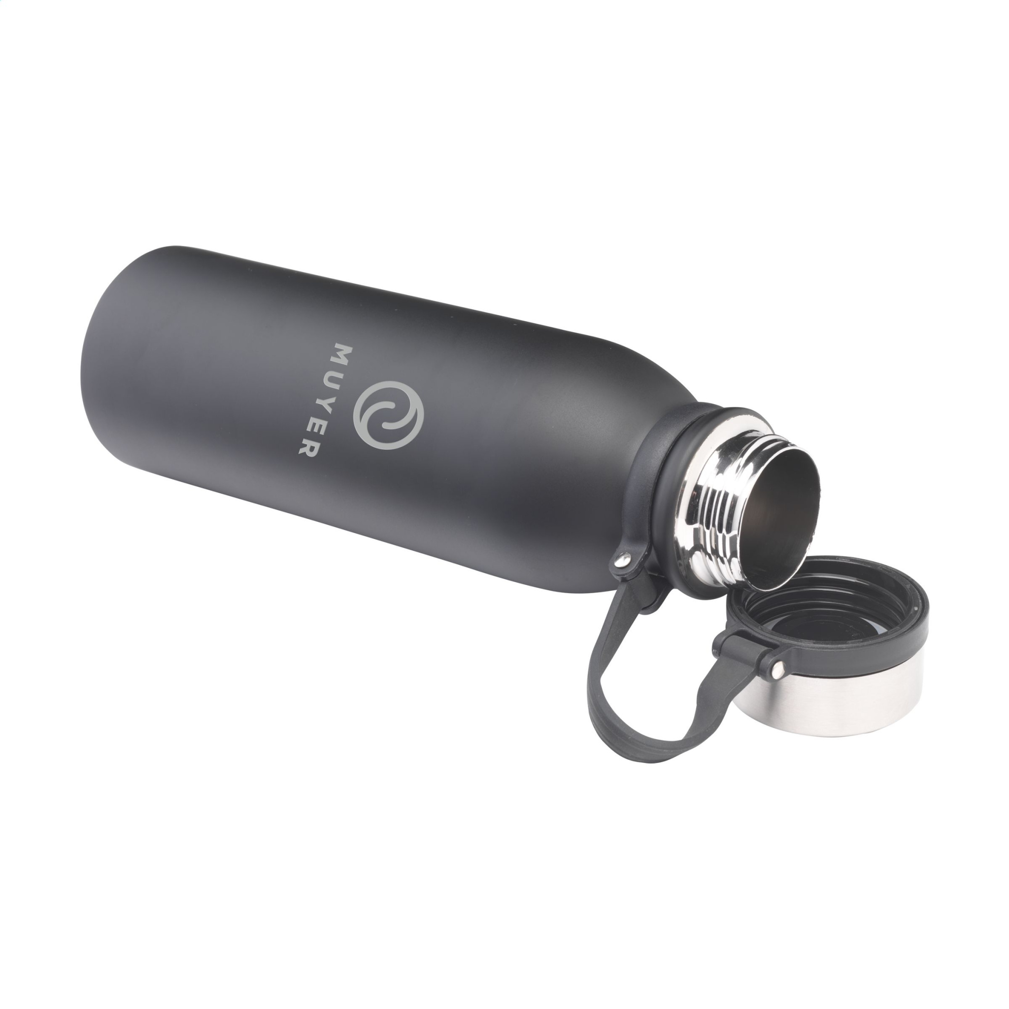 Бутылка для воды/термос из нержавеющей стали с двойными стенками, вакуумной изоляцией, герметичная. Крышка с резьбой прикреплена к вращающемуся силиконовому ремню для переноски и остается прикрепленной, когда бутылка открыта, поэтому одна рука всегда остается свободной. Подходит для поддержания температуры холодных или горячих напитков. Емкость 600 мл. Каждый предмет упакован в индивидуальную коробку.