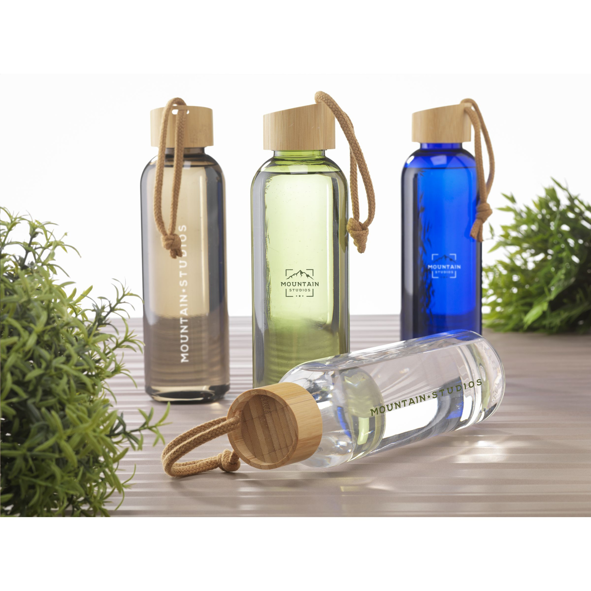 WoW! Многоразовая, переработанная бутылка для воды. Корпус изготовлен из 100% RPET. С герметичной бамбуковой винтовой крышкой, к которой прикреплен удобный шнур для переноски. Тонкий дизайн особенно удобен для удерживания. Не подходит для мытья в посудомоечной машине. Сертифицировано GRS. Общее количество переработанного материала: 73%. Емкость 680 мл.