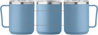 Double wall mug with 90 % recycled stainless steel and 10% stainless steel interior and recycled PP exterior. Includes transparent AS sliding lid. Capacity 400ml.