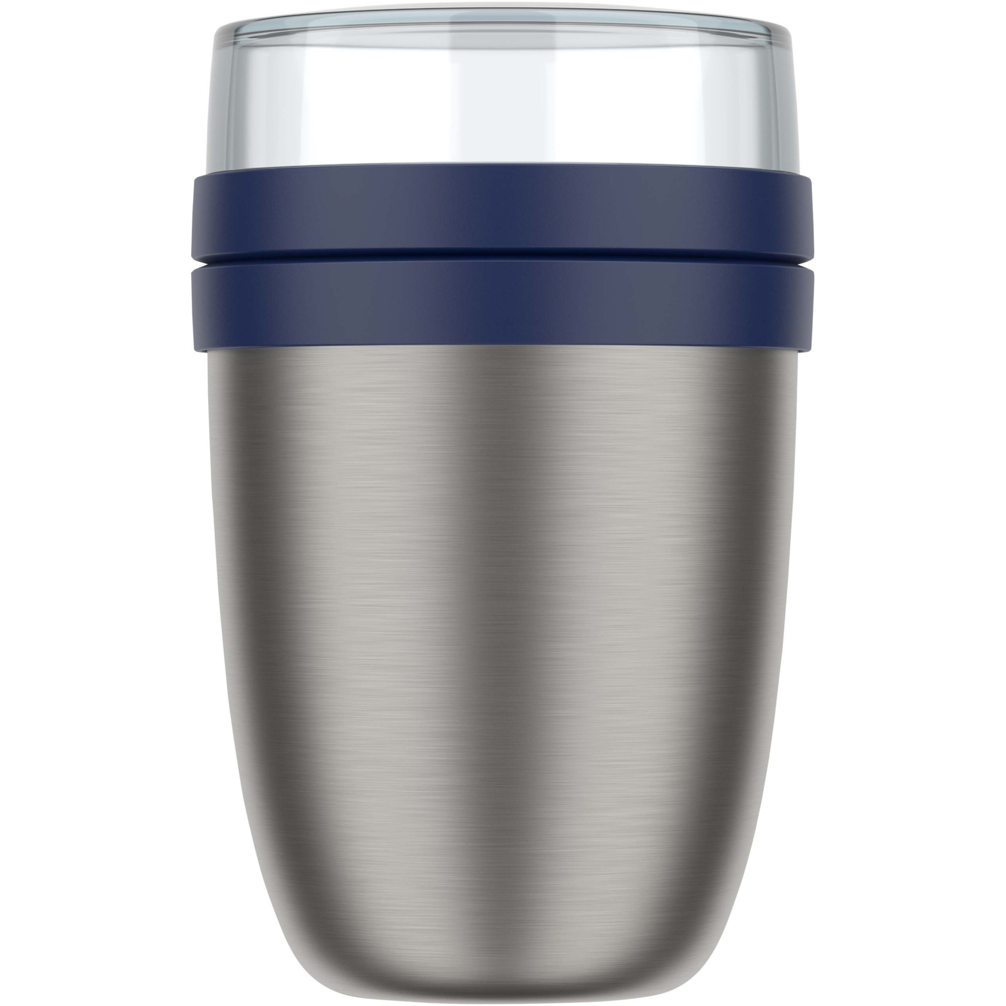 Герметичный пищевой контейнер с двумя раздельными отделениями, позволяющими хранить различные продукты отдельно друг от друга. Оба контейнера имеют отдельную крышку, чтобы ингредиенты не смешивались. Еда останется горячей в течение 6-8 часов и холодной в течение 12 часов. Объем верхнего прозрачного контейнера составляет 200 мл. Емкость нижнего контейнера составляет 500 мл. Изготовлен из прочного материала, внешняя часть контейнера остается холодной и сухой. Рекомендуется ручная мойка. Пластиковые части крышки можно мыть в посудомоечной машине.