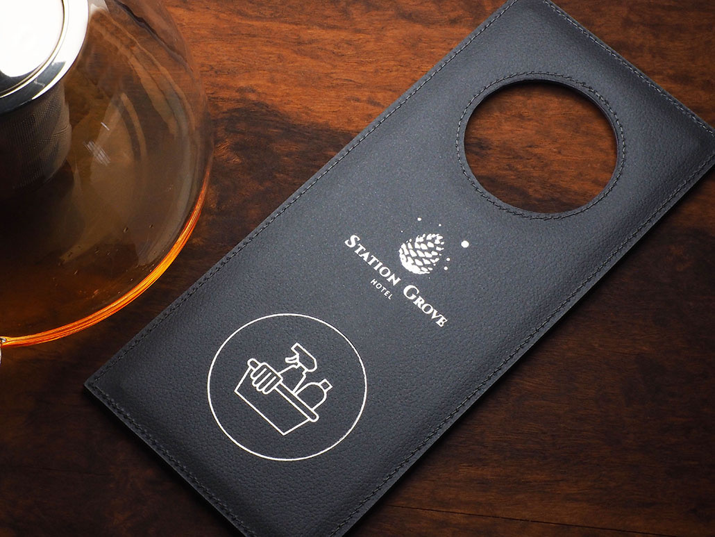 Лого трейд бизнес-подарки фото: Информационная бирка на дверь в гостинице 1960319