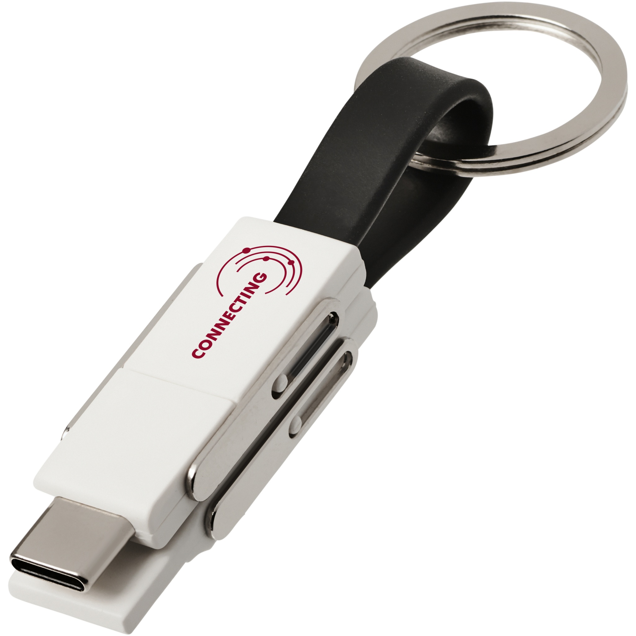 Кабель "4 в 1" позволяет заряжать любые устройства. Он оснащен разъемами USB Type A, Type-C и наконечником "2 в 1", совместимым как с устройствами iOS, так и с устройствами Android. Может использоваться как для зарядки, так и для передачи данных. Кабель оснащен брелоком и магнитами, обеспечивающими удобную переноску.