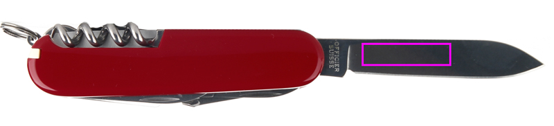 особенности: 1. большое лезвие 2. пилочка для ногтей: 3 - приспособление для чистки ногтей 4. штопор 5. консервный нож с: 6. - маленькой отверткой 7. открывалка для крышек с: 8. - отверткой 9. - инструментом для зачистки проводов 10. шампур-шило 11. кольцо для ключей 12. пинцет 13. зубочистка