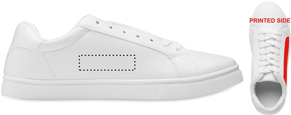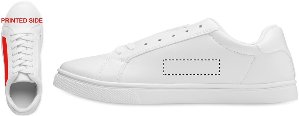 Легкие кроссовки из полиуретана с резиновой подошвой и шнурками из полиэстера. Размер: 47. Поставляются в белой обувной коробке. Кроссовки поставляются со шнурками, продетыми только в первые 2 люверса.