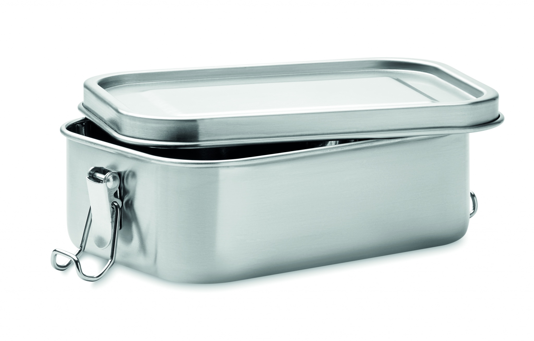 Ланч-бокс из нержавеющей стали с прочными боковыми застежками, обеспечивающими герметичность. Емкость 750 мл.