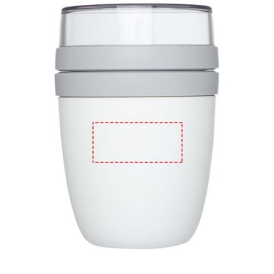 Ланч-бокс с двумя раздельными отделениями, позволяющими хранить различные продукты отдельно друг от друга. Каждое отделение закрывается отдельной крышкой, поэтому они остаются чистыми. Объем верхнего прозрачного контейнера составляет 200 мл, что соответствует примерно 75 граммами твердой пищи. Емкость нижнего контейнера составляет 500 мл. Ланч-бокс изготовлен из прочного материала, поэтому продукты в нем можно хранить в холодильнике, разогревать в микроволновой печи (сняв крышку), а сам ланч-бокс можно мыть в посудомоечной машине. Верхний прозрачный контейнер нельзя использовать в микроволновой печи. Герметичный. Без содержания БФА.