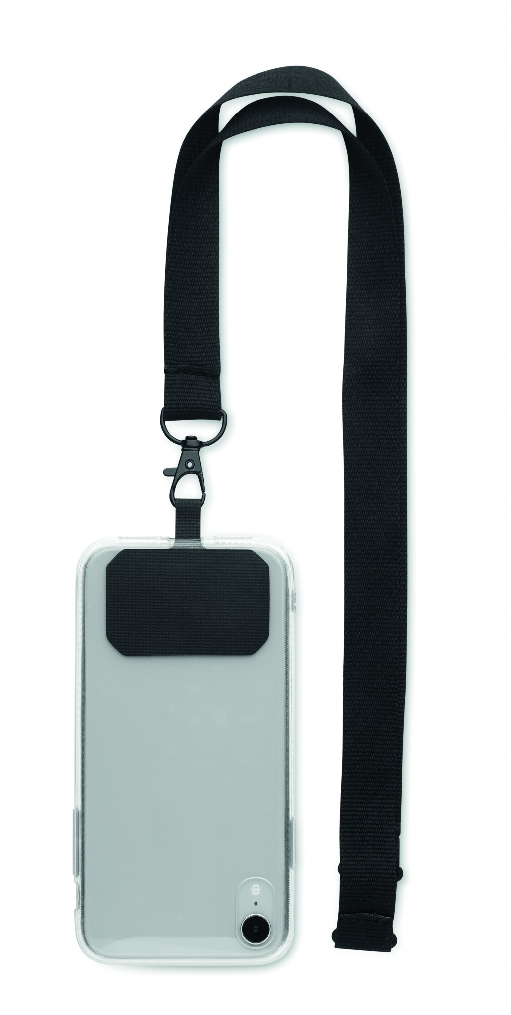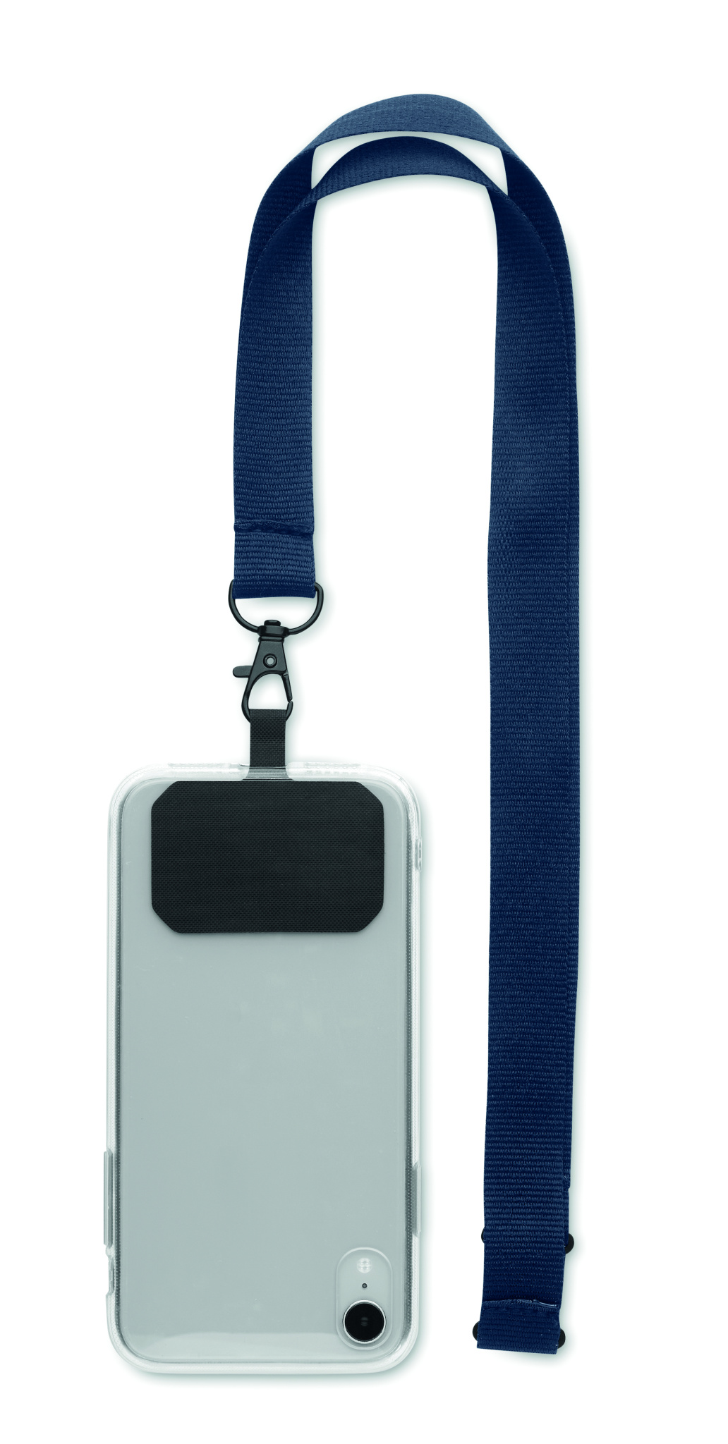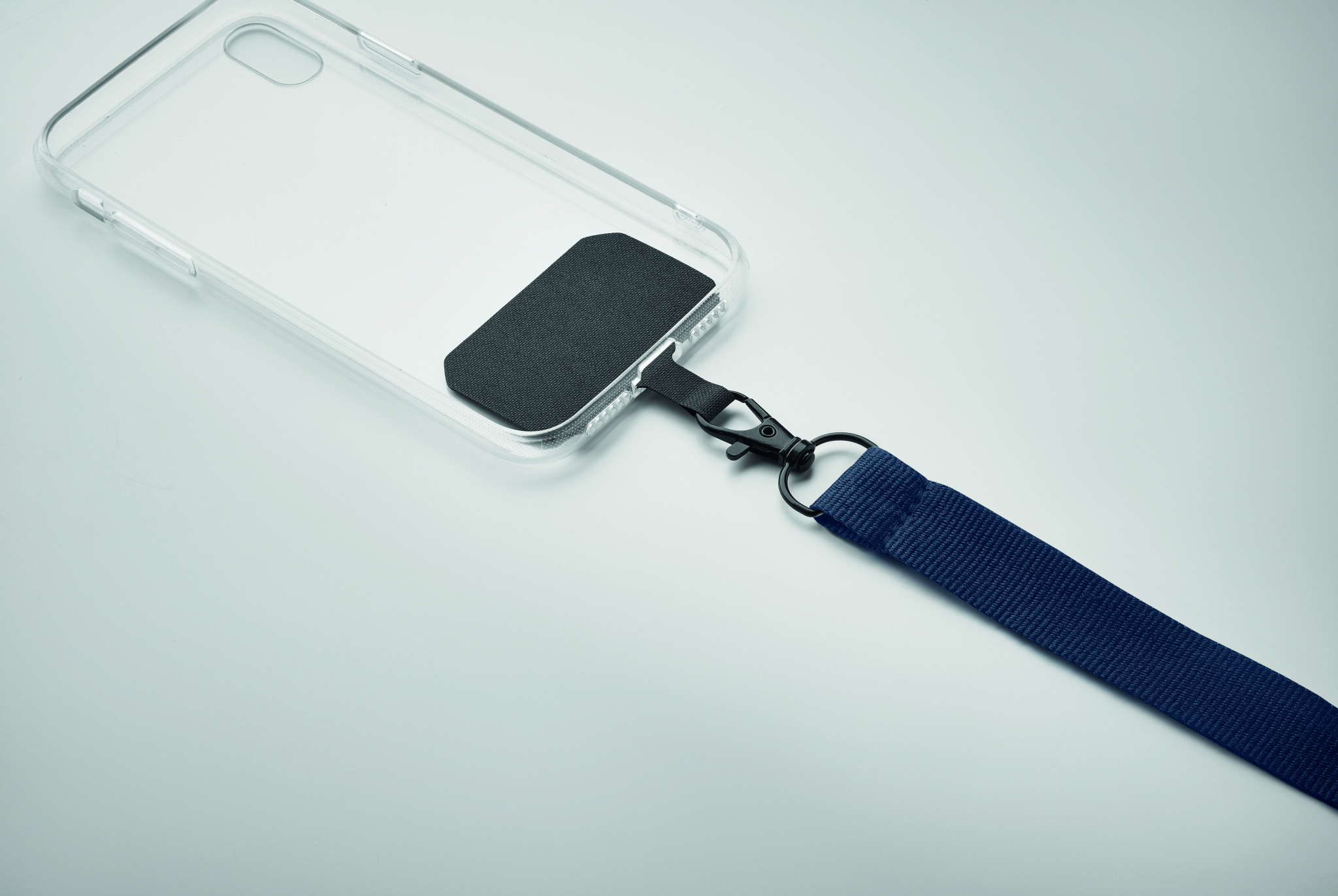 Ланьярд из полиэстера с держателем для телефона и безопасной застежкой. Ширина 2 см.