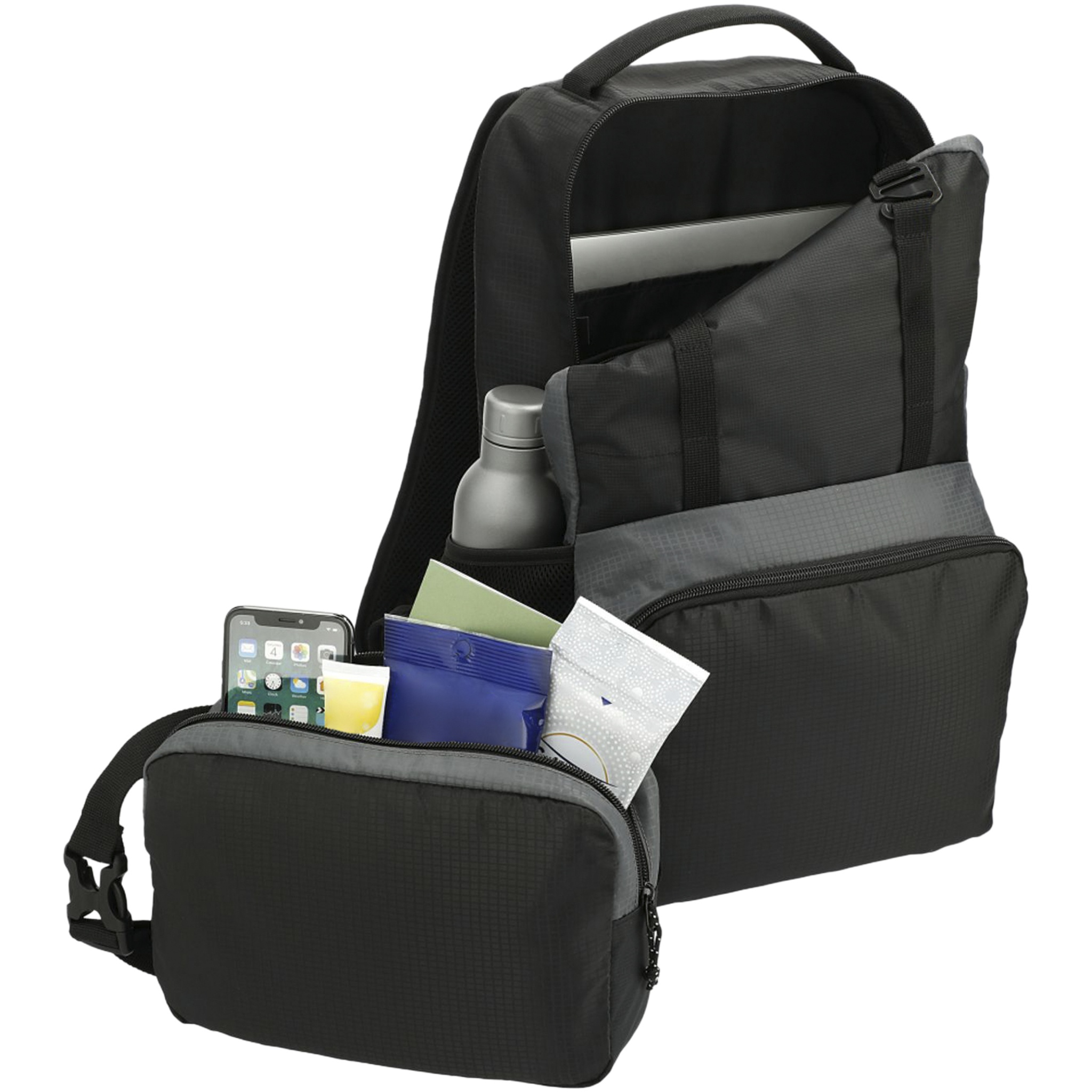 Рюкзак Trailhead объемом 14 литров изготовлен из переработанных по стандарту GRS водоотталкивающей ткани и подкладки, он предоставляет первоклассное удобство благодаря поясной сумке на молнии на передней части рюкзака в качестве удобного аксессуара для использования на ходу. Также для дополнительного места для хранения рюкзак имеет передний карман с панелью-органайзером, два сетчатых кармана для бутылок с водою и мягкие регулируемые плечевые ремни для удобства при ношении. Рюкзак имеет модный клетчатый узор, что делает его еще более выделяющимся.