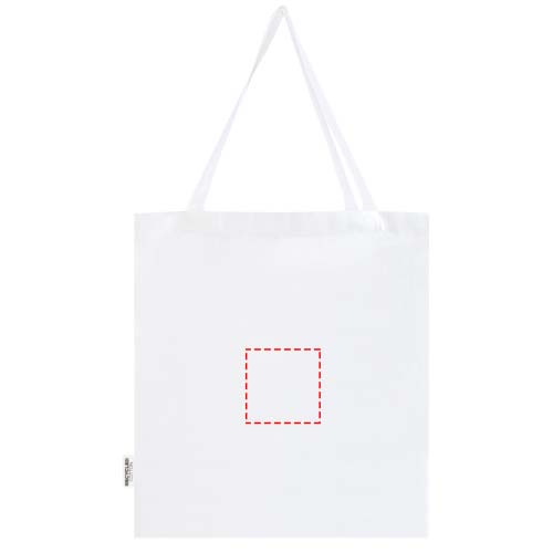 Эко-сумка с ластовицей Madras, изготовленная из 100% переработанного хлопка, сертифицированного согласно GRS, — это идеальная сумка для раздачи на мероприятиях, конференциях или использования в качестве шоппера для небольших продуктов. Хлопок плотностью 140 г/м² делает эту сумку прочной, долговечной и удобной для переноски тяжелых предметов в основном отделении. Благодаря плечевым ручкам длиной 30 см эко-сумку легко носить с собой. Методы печати, доступные для этой эко-сумки, также сертифицированы, что гарантирует прозрачность и сертификацию всей цепочки поставок. Сделано в Индии. Выдерживает вес до 5 кг.