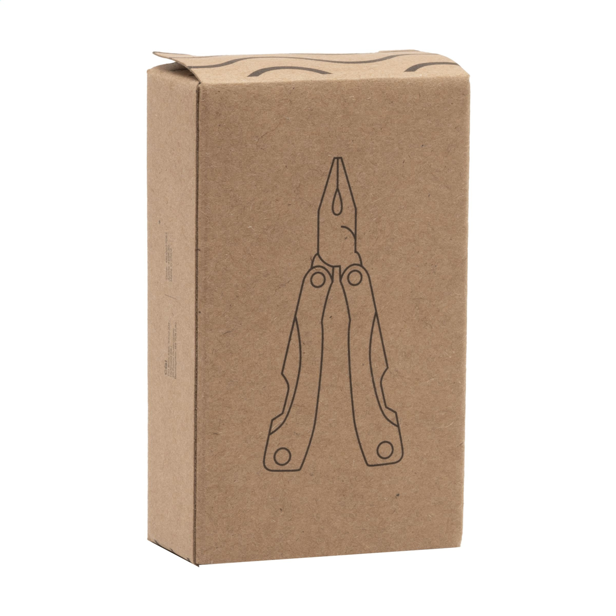 Компактный многофункциональный инструмент из нержавеющей стали с алюминиевой рукояткой и металлическим внешним видом. 9 предметов с 13 функциями: щипцы, кусачки, 3 отвертки, крестовая отвертка, напильник, пила/скребок для рыбы, нож, развертка, консервный нож и съемник крышек. В нейлоновом чехле 600D. Обратите внимание, что могут применяться местные правила относительно хранения и/или ношения ножей или многофункциональных инструментов в общественных местах. Каждый предмет поставляется в индивидуальной коричневой картонной коробке.