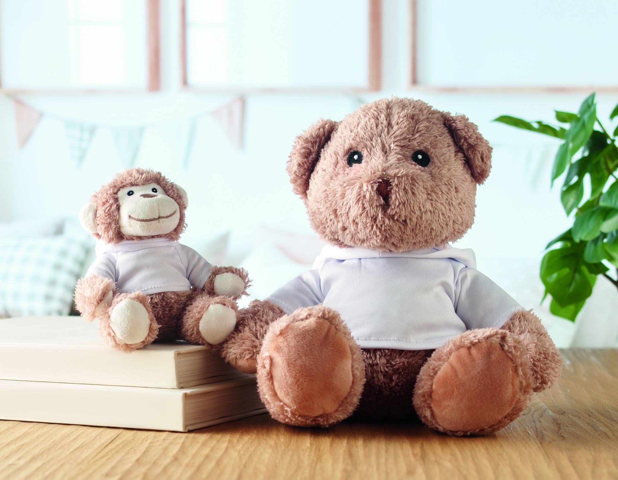 Большой плюшевый медведь в свитере с капюшоном. Идеально подходит для сублимационной печати.