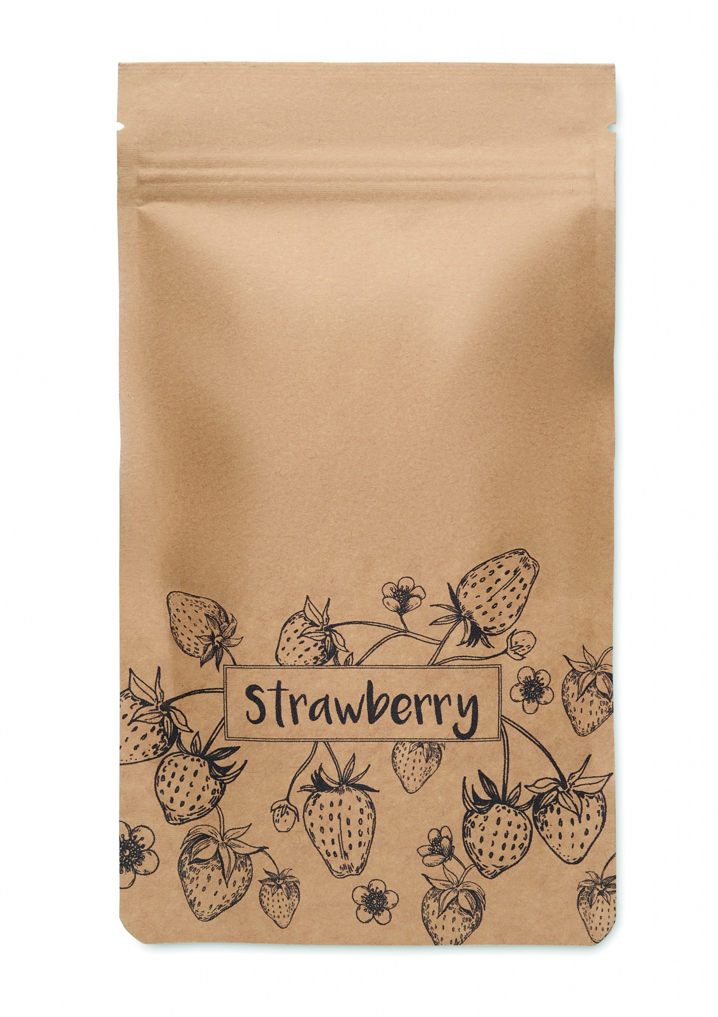 Набор для выращивания клубники, включающий садовый компост, в бумажной упаковке. Сделано в ЕС.