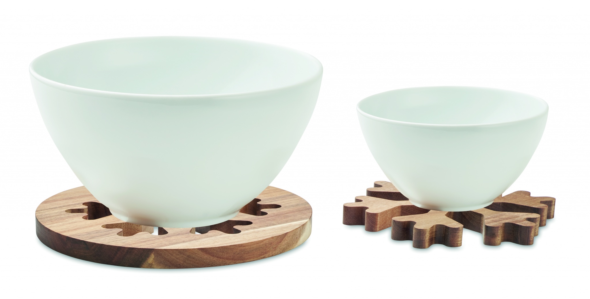 Комплект из 2 подставок для горячего из древесины акации с рисунком снежинка.
