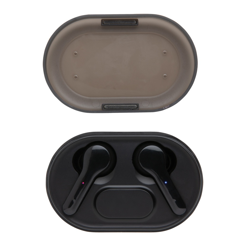 Полная свобода при прослушивании музыки с мобильного устройства. Эти наушники TWS поставляются в беспроводном зарядном футляре емкостью 300 мАч с дополнительной возможностью добавления логотипа, который будет светиться во время зарядки футляра. Наушники заряжаются за 1,5 часа и работают до 3 часов. BT 5.0 для автоматического сопряжения с мобильным устройством и сопряжения наушников друг с другом. Рабочее расстояние до 10 метров. В комплект входит кабель micro USB TPE без ПВХ для подзарядки зарядного футляра. С функцией ответа на звонки. В комплект входят ушные вкладыши 3 размеров, подходящие всем.