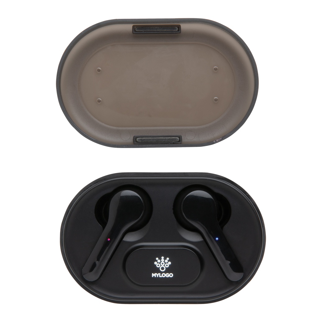 Лого трейд бизнес-подарки фото: Наушники TWS с подсветкой и логотипом в чехле для зарядки