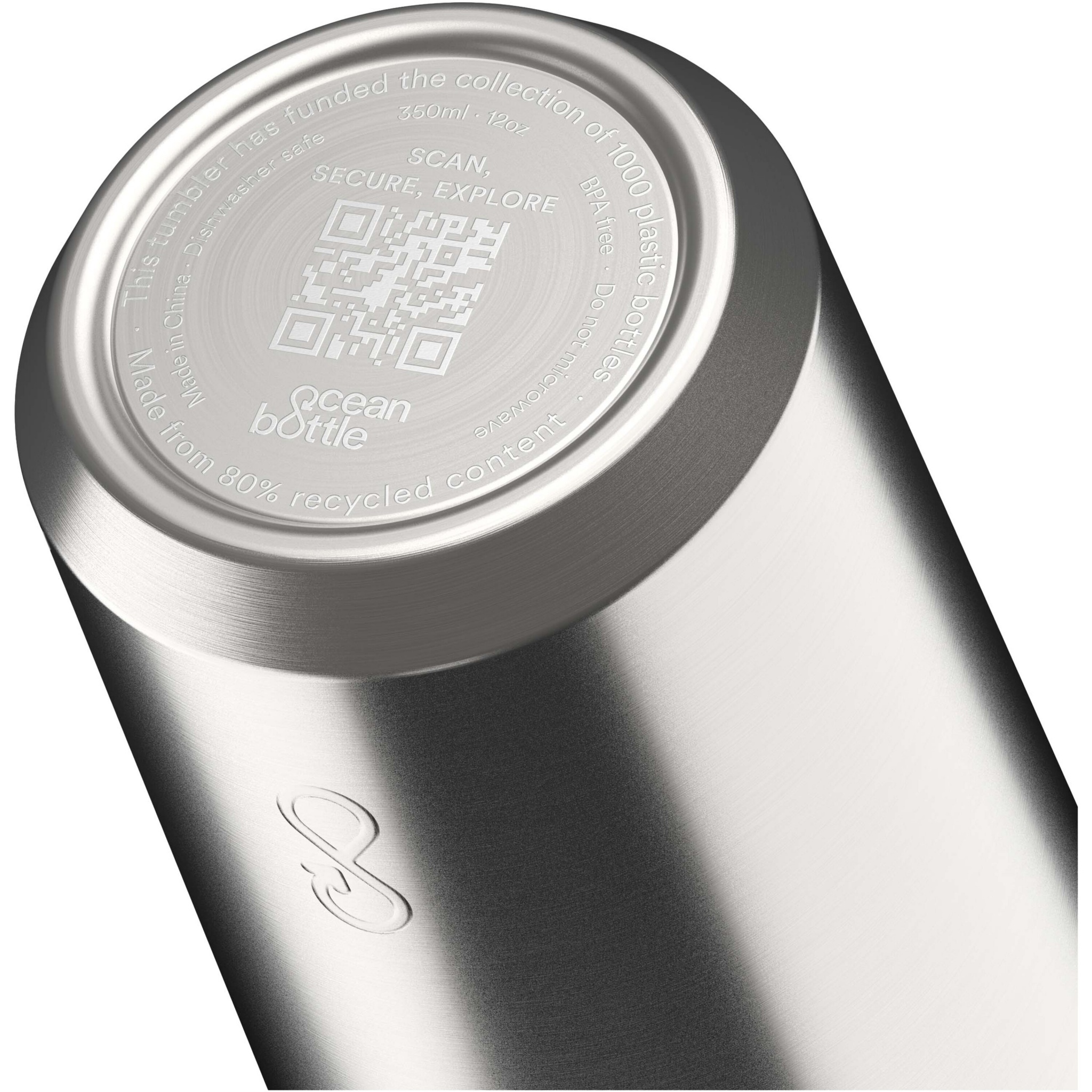 Стакан Ocean Bottle объемом 350 мл двойную изоляцию стенок, позволяющую сохранять напитки горячими до четырех часов и холодными до десяти часов. Он легко помещается в большинство кофемашин, а также в большинство автомобильных подстаканников. Каждая дорожная кружка полностью углеродно-нейтральна и позволяет заменить 1000 пластиковых бутылок для улучшения условий жизни прибрежных сообществ. Стакан на 90 % изготовлен из переработанной нержавеющей стали и других переработанных материалов. Поставляется в подарочной коробке из переработанного картона, полученного из ответственных источников.