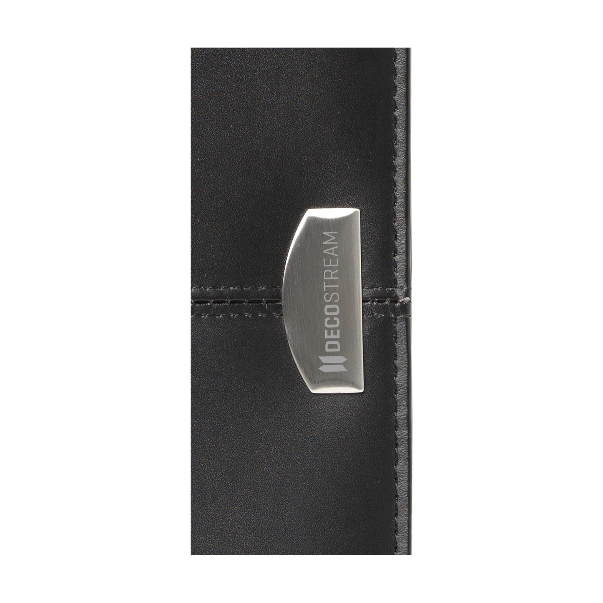 Папка для конференций/документов из высококачественной склеенной кожи формата А4. С несколькими карманами, отделениями для визиток и застежкой-молнией. Включает блокнот и шариковую ручку. Каждый предмет в индивидуальной коробке.