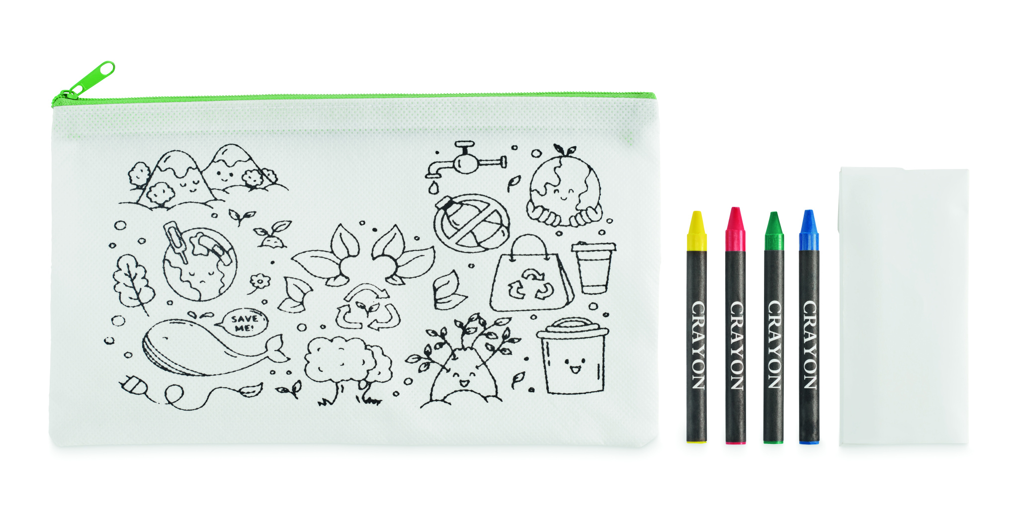 Non woven pencil case including 4 crayons.