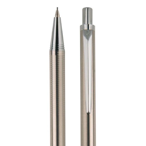 Роскошный набор из шариковой ручки и микрокарандаша Pierre Cardin в серебряном цвете, алюминиевый корпус с простым зажимом, тонкая гравировка на поверхности ручки. Шариковая ручка содержит качественный синий стержень с наконечником 1 мм, микрокарандаш с графитом 0,5 мм. Упакован в роскошный карман Pierre Cardin, поставляется с сертификатом подлинности.
