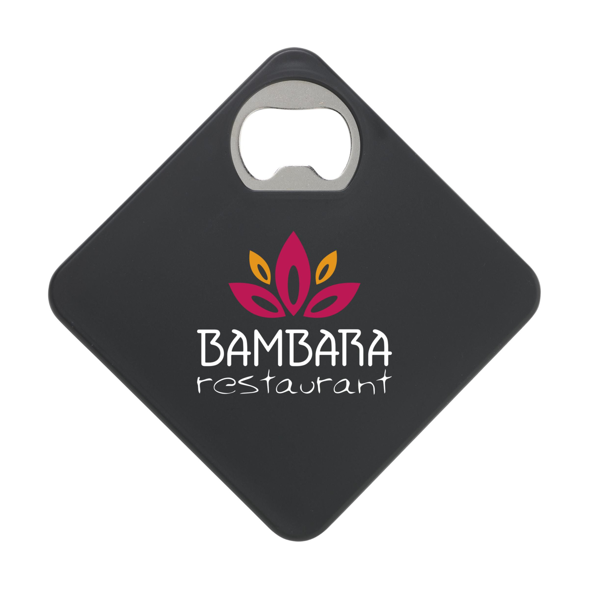 Подстаканник и металлическая открывалка в одном. С нескользящей основой. Можно напечатать собственную фотографию, логотип или собственный дизайн в полном цвете. Очень подходит для отправки в качестве почтового подарка.
