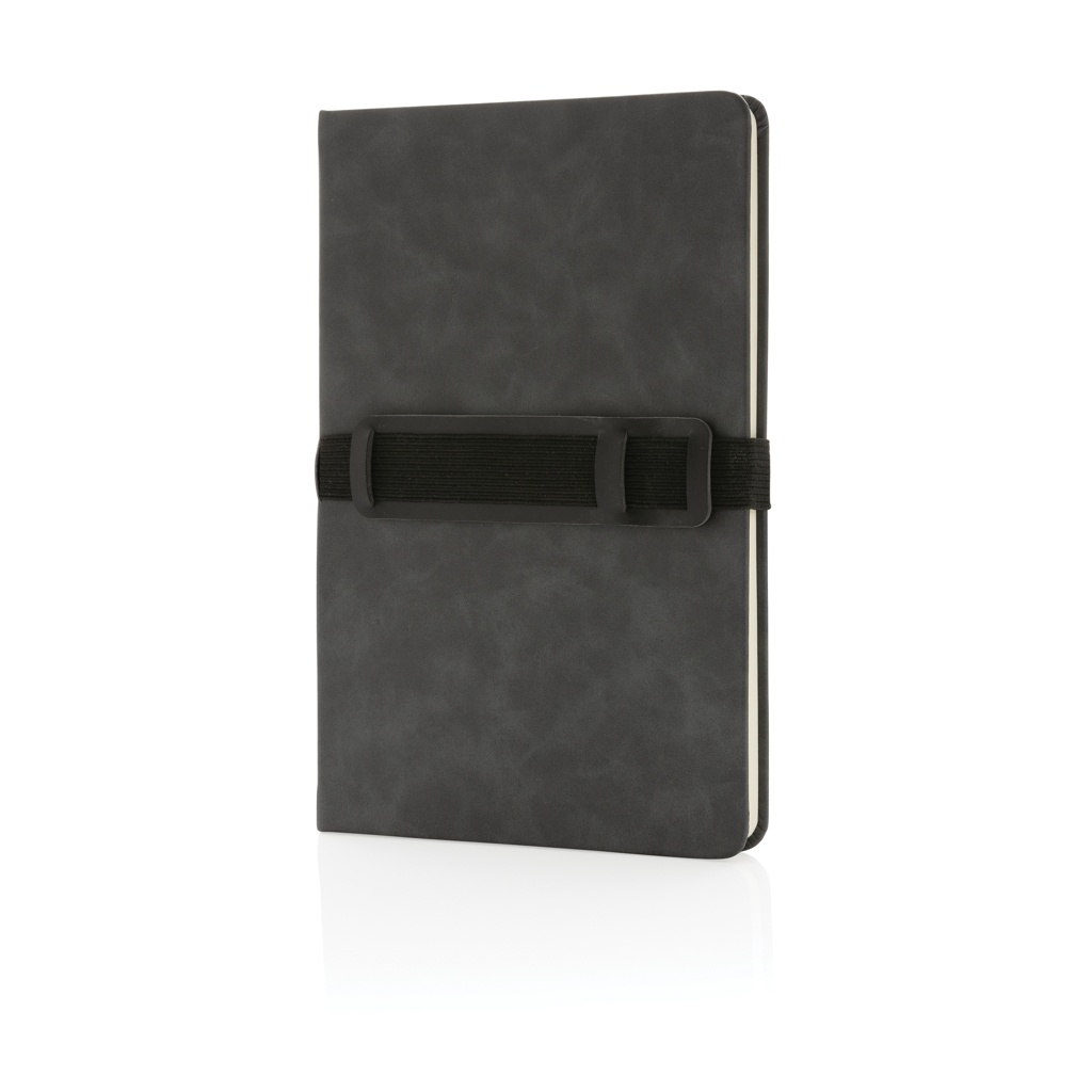Роскошный блокнот в твердом переплете формата А5 с держателем для телефона и ручки, серый