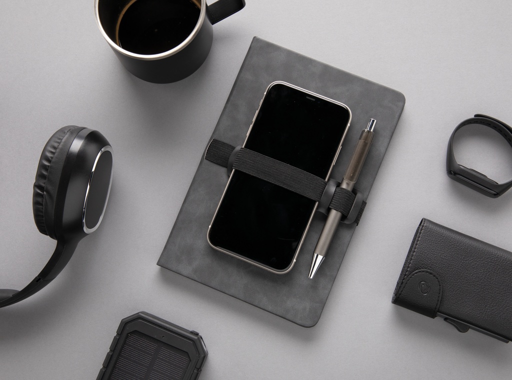 Лого трейд pекламные продукты фото: Роскошный блокнот в твердом переплете формата А5 с держателем для телефона и ручки