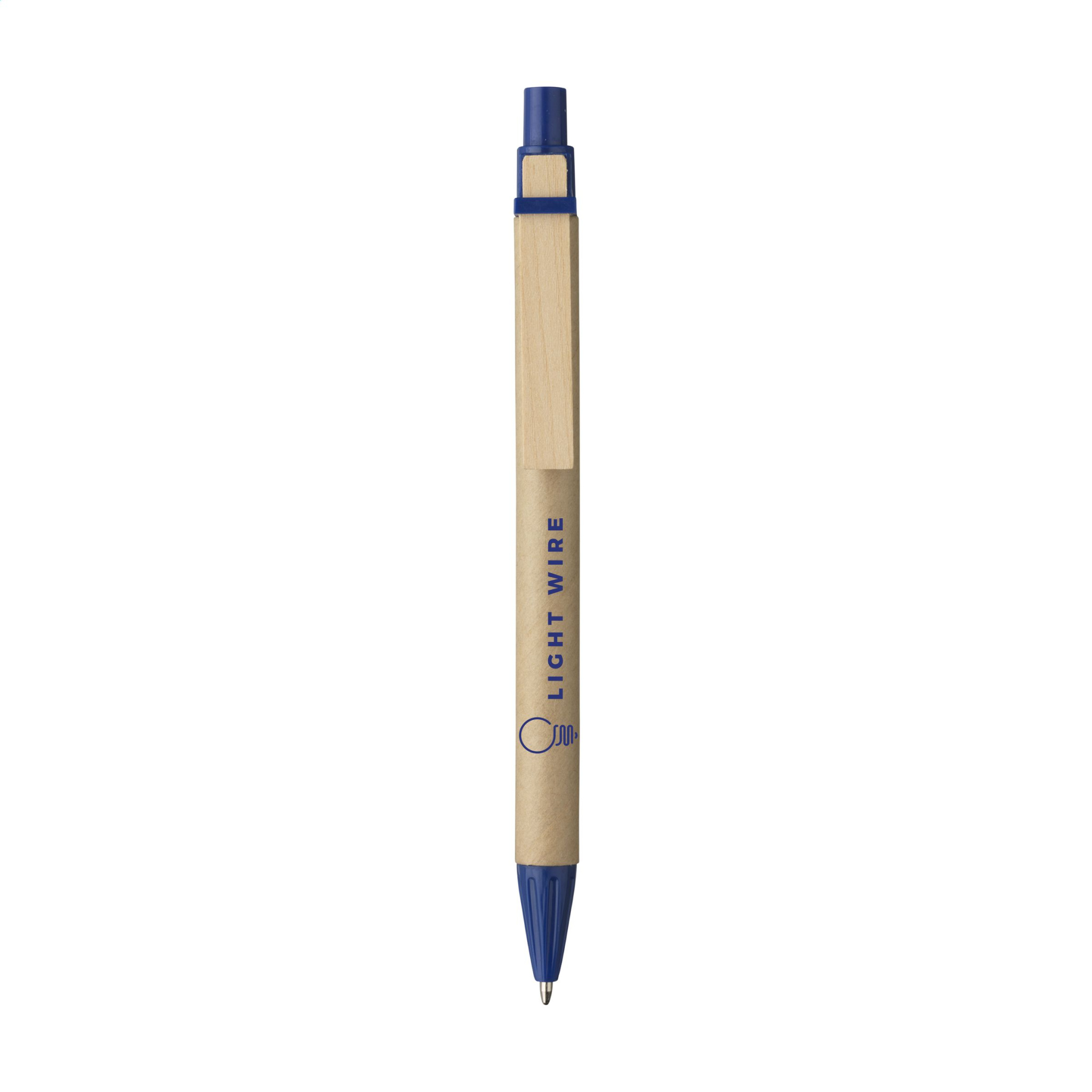 WoW! Шариковая ручка с синими чернилами, держателем из переработанного картона, деревянным зажимом и цветными пластиковыми вставками.