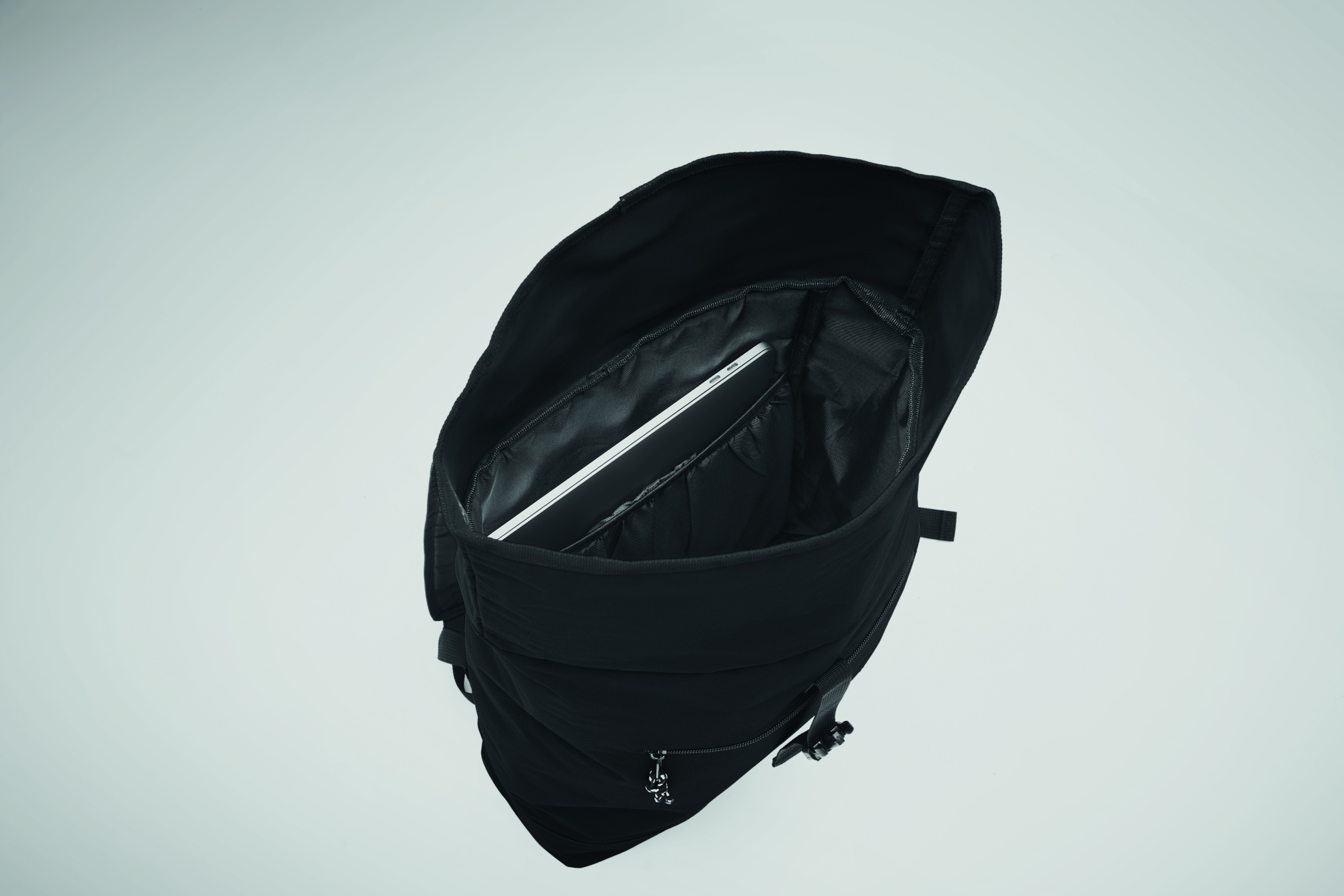 Рюкзак для ноутбука 15 дюймов из полиэстера 600D с застежкой ролл-топ, мягкой спинкой и усиленным дном. Передний карман на молнии. Подкладка из материала 210D.