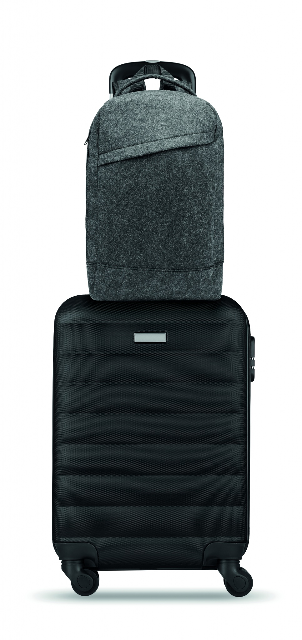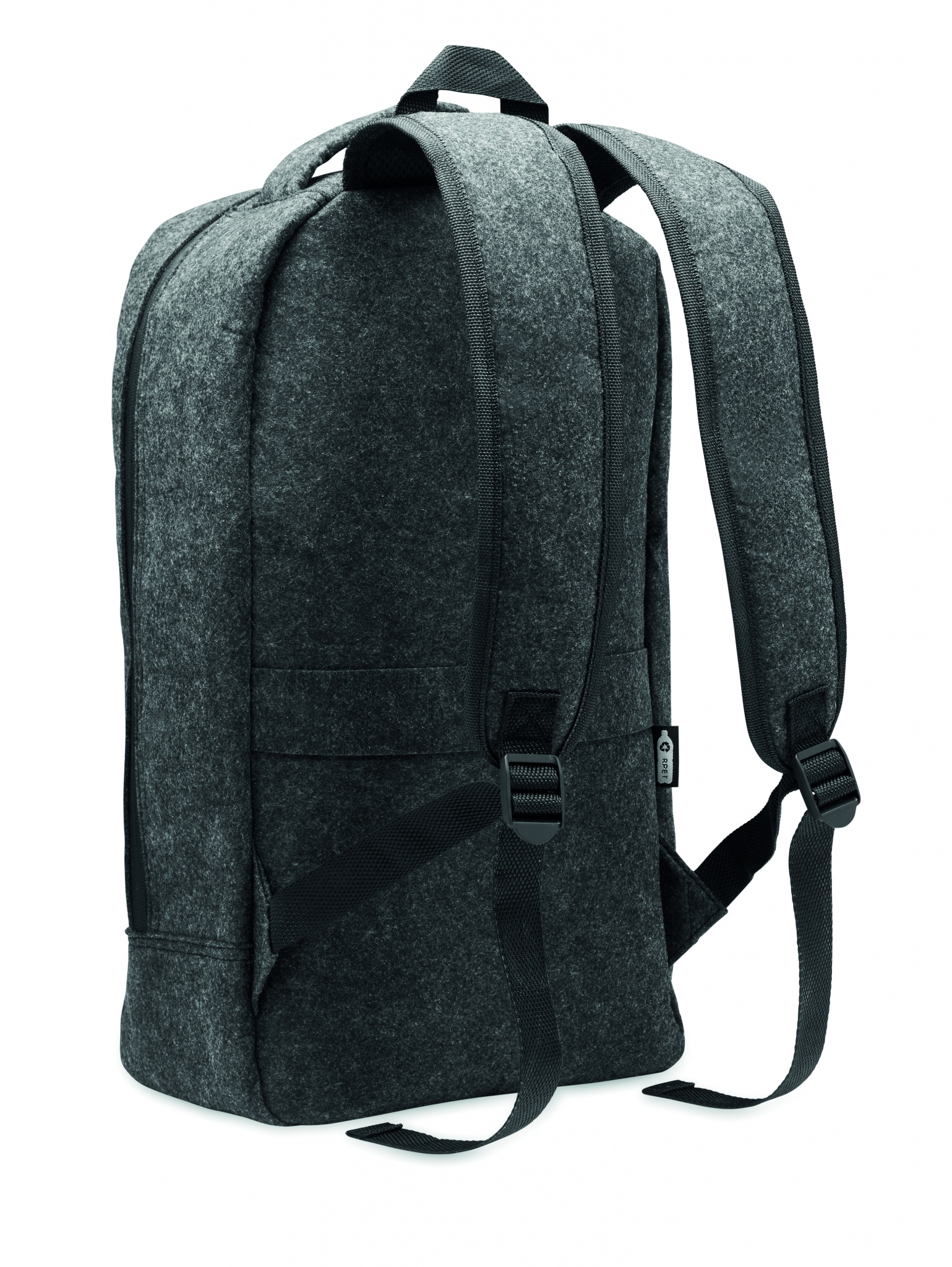 Рюкзак для ноутбука 13 дюймов из переработанного войлока RPET с мягкими наплечными лямками. Отделение на молнии внутри. Ремень для крепления на чемодане.