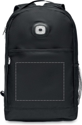 Рюкзак из 600D RPET со съемным фонариком спереди. Передний карман на липучке. Сетчатый карман на боку. Батарейка включена.
