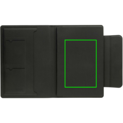 Папка формата А5, переработанный полиэстер PU с магнитной застежкой и магнитным держателем для телефона, совместимым с iPhone 12 или выше с функцией Magsafe, внутри блокнот формата А5 в линейку, внутренние листы сертифицированы FSC® и 64 листа/128 страниц; цвет кремовой бумаги в линейку; плотность бумаги 80 г/м², карман для документов и 2 отделения для визиток. Блокнот можно заполнять.