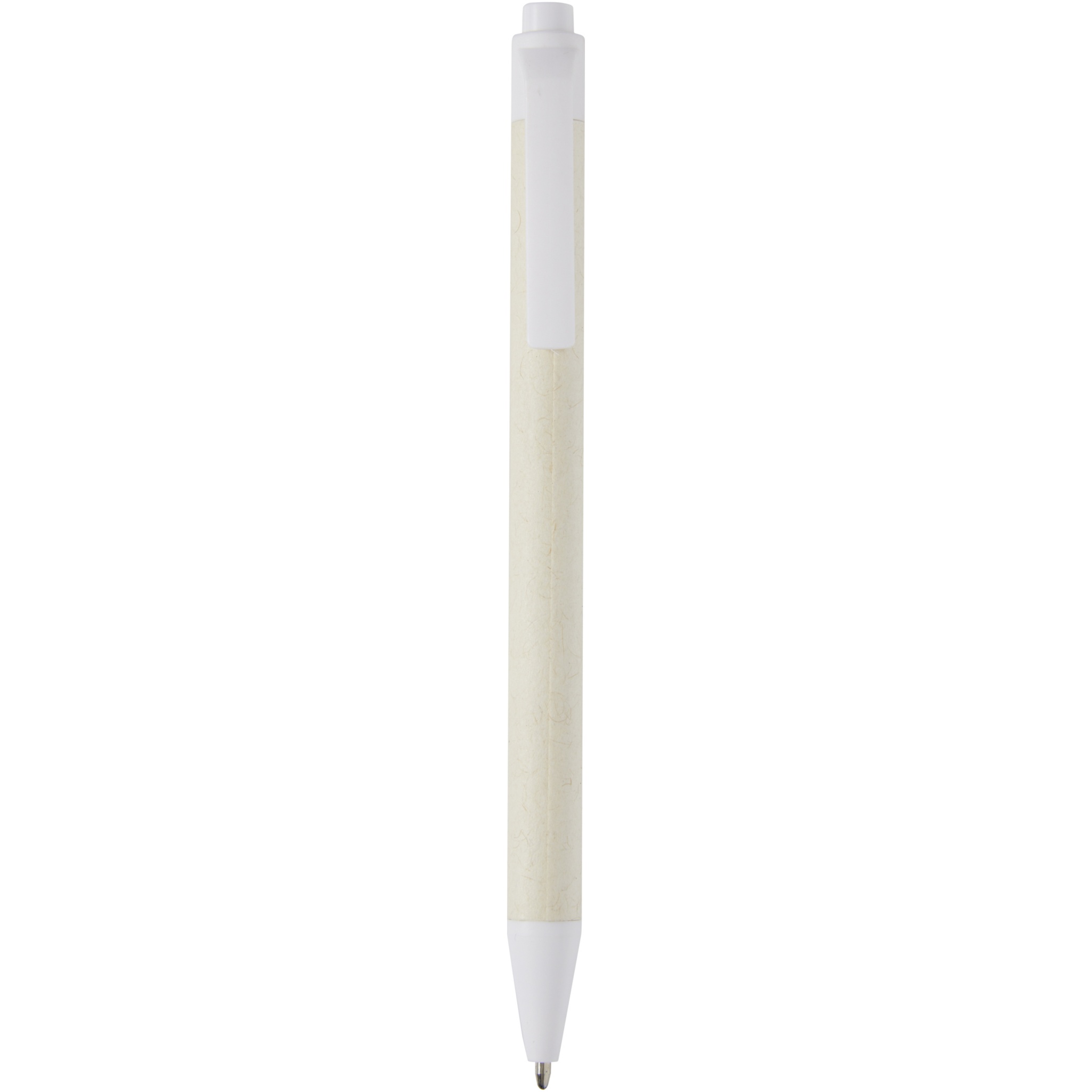 Шариковая ручка с кнопочным механизмом и корпусом из переработанных коробок из-под молока (до 70%). Кнопка, зажим и наконечник изготовлены из PLA-пластика. Картонные коробки из-под молока собираются, сортируются, перерабатываются и превращаются в бумагу, таким образом действительно превращая мусор во что-то полезное.