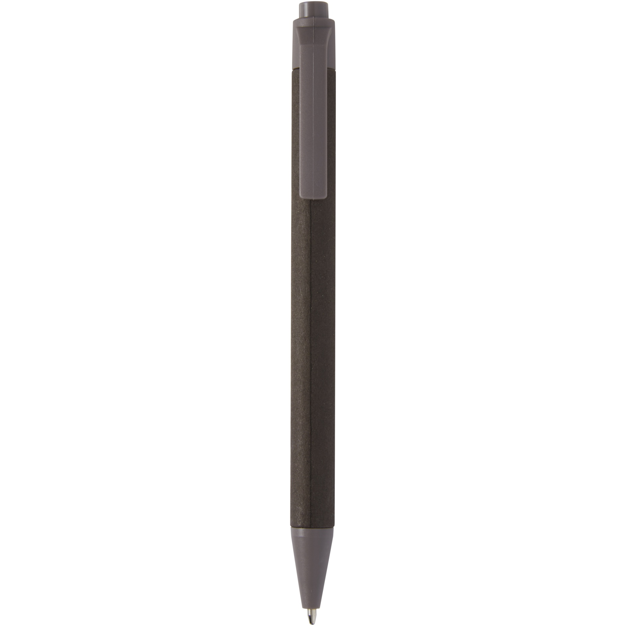 Легкая шариковая ручка для повседневных заметок. Корпус изготовлен из мятой бумаги, полученной из ответственных источников. Коричневая бумага содержит остатки кофе, зеленая — оливок, а белая — кукурузы. Дно, зажим и наконечник изготовлены из PLA-пластика. Черные чернила. Длина непрерывной линии: 700 метров.