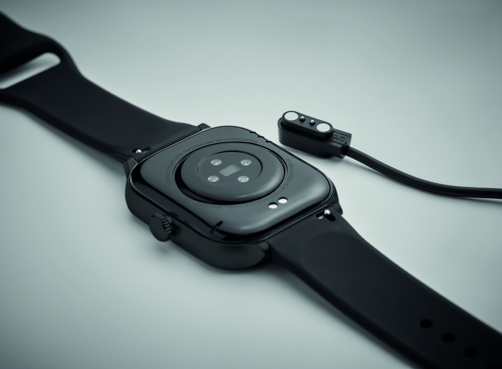 Беспроводные смарт часы 4.0 из цинкового сплава с силиконовым ремешком. Сенсорный ЖК-дисплей. Перезаряжаемый литий-полимерный аккумулятор емкостью 180 мАч. Водонепроницаемость IPX7. Требуется бесплатное приложение (HryFine доступно для iOS и Android).