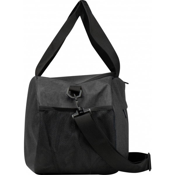 Сумка из переработанного полиэстера 300D. Идеальный компаньон для спорта и путешествий. Помимо просторного внутреннего отделения, сумка имеет регулируемый и съемный плечевой ремень, две ручки для переноски, два сетчатых кармана снаружи и отделение на молнии снаружи. Мы напечатаем ваш логотип на отделении на молнии.