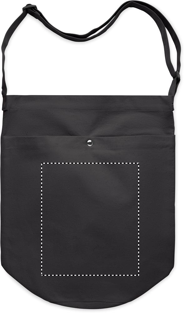 Холщовая сумка на длинном регулируемом плечевом ремне с большим передним карманом на застежке. Есть внутренний карман. 270 гр/м².