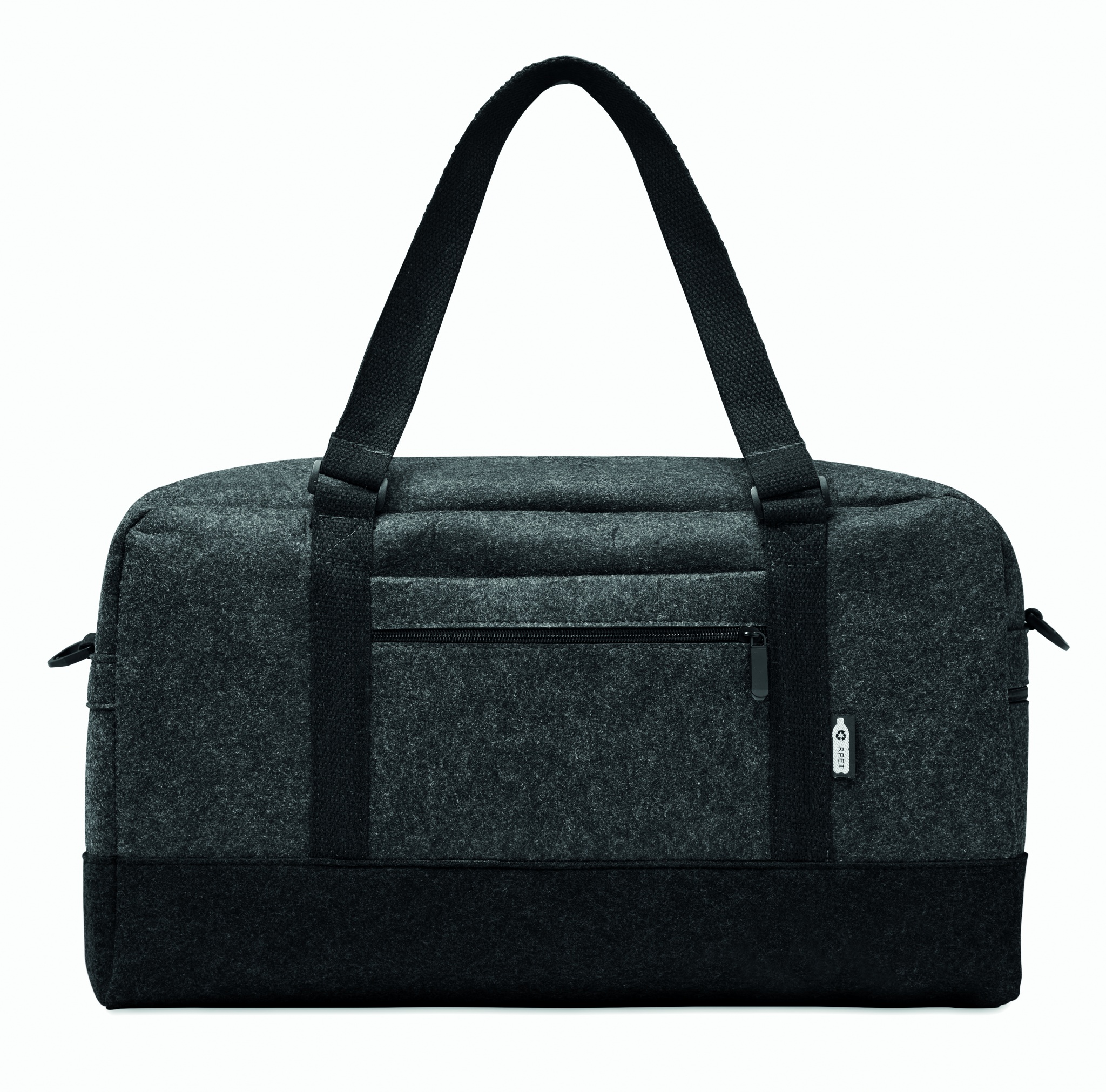 Сумка из переработанного фетра RPET, предназначеннная для спорта/фитнеса или для небольших поездок . Удобный передний карман на молнии, холщовые ручки и съемный регулируемый плечевой ремень.