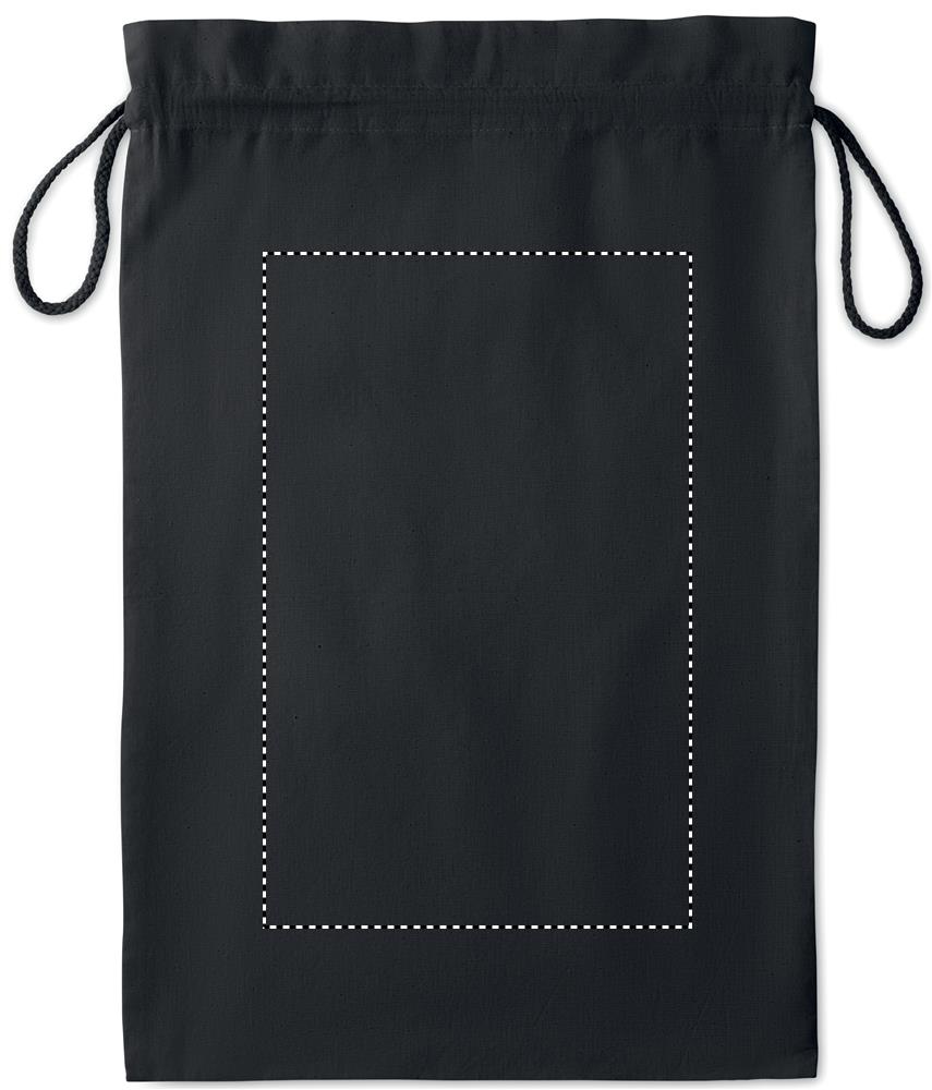 Большой хлопковый подарочный мешок плотностью 105 г/м² с завязками, размером 30 x 47 см, черного цвета, доступен с вашим индивидуальным дизайном на сайте www.logo.ee. Закажите этот и другие подарки и товары с персонализированной печатью онлайн для вашей компании!