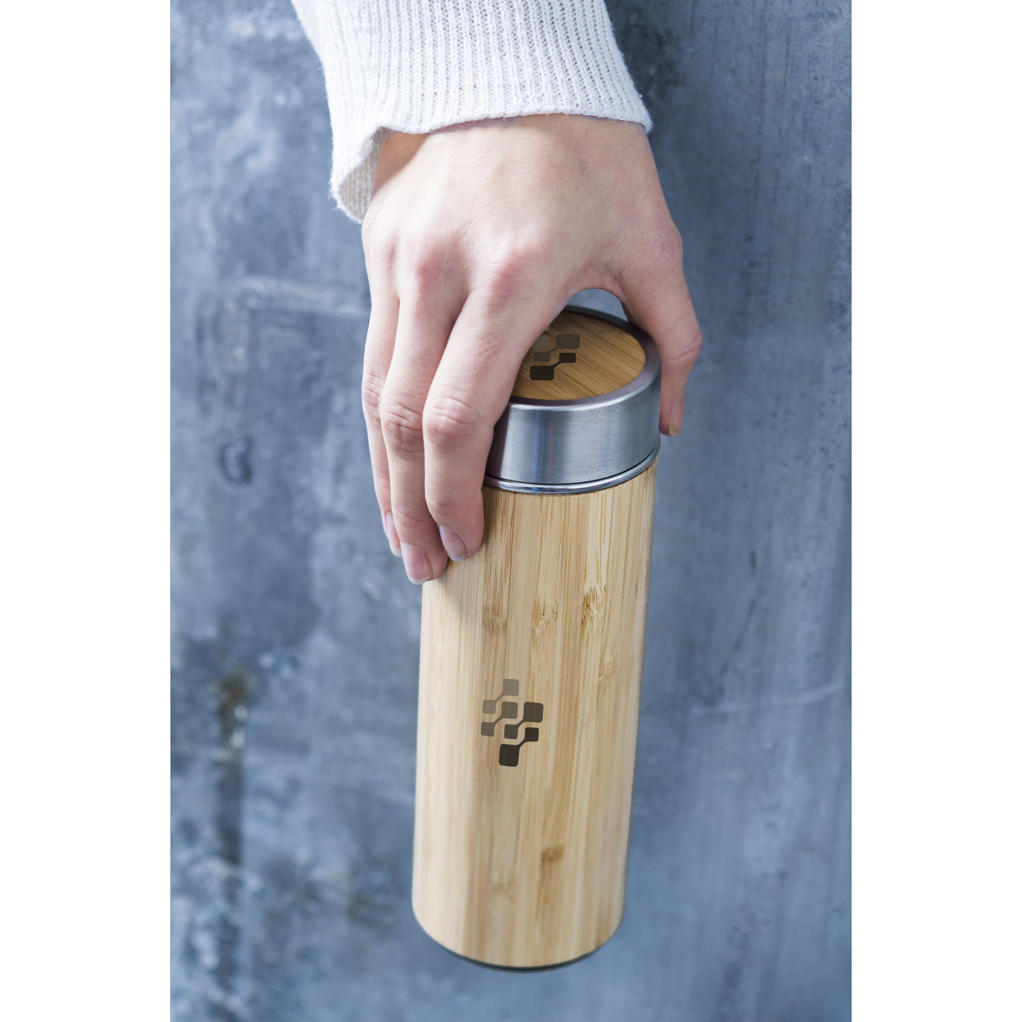 Термобутылка/термокружка из нержавеющей стали с двойными стенками, герметичная, с вакуумной изоляцией и бамбуковым покрытием. Включает съемное ситечко для чая из нержавеющей стали. Емкость 360 мл. Каждый предмет в индивидуальной упаковке.