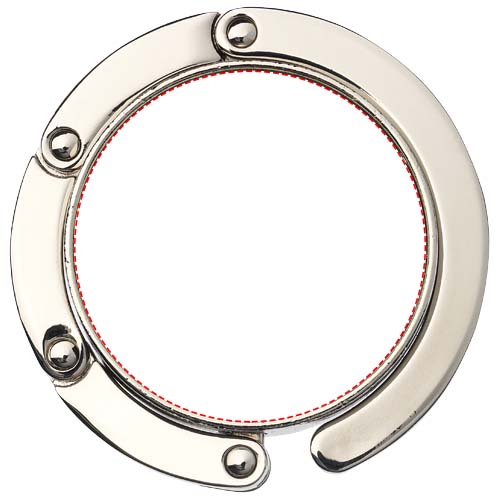 Складная вешалка для сумки, которая помогает уберечь сумку от загрязнения. Вешалку можно прикрепить на край поверхности; она выдерживает до 4,5 кг.