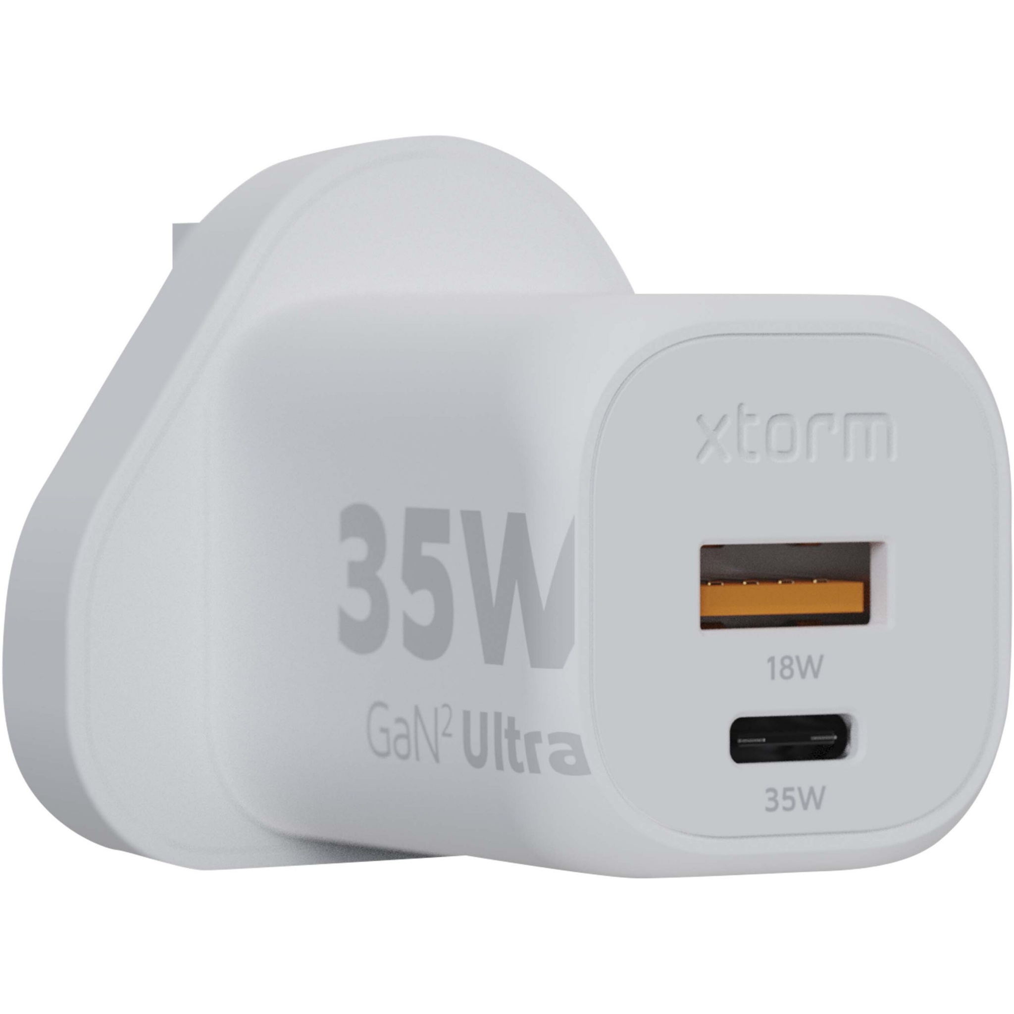 Сетевое зарядное устройство GaN² Ultra мощностью 35 Вт с вилкой стандарта Великобритании спроектировано так, чтобы быть более компактным и мощным, чем когда-либо прежде. Благодаря компактному дизайну и двум портам это сетевое зарядное устройство идеально подходит для путешествий, офиса или дома. Чтобы сократить количество отходов и способствовать более устойчивому будущему, зарядное устройство на 97 % изготовлено из переработанной пластмассы. Выходная мощность: 1 порт USB-C мощностью 35 Вт для подачи питания и 1 порт USB-A мощностью 18 Вт для быстрой зарядки 3.0. Поставляется с руководством пользователя.