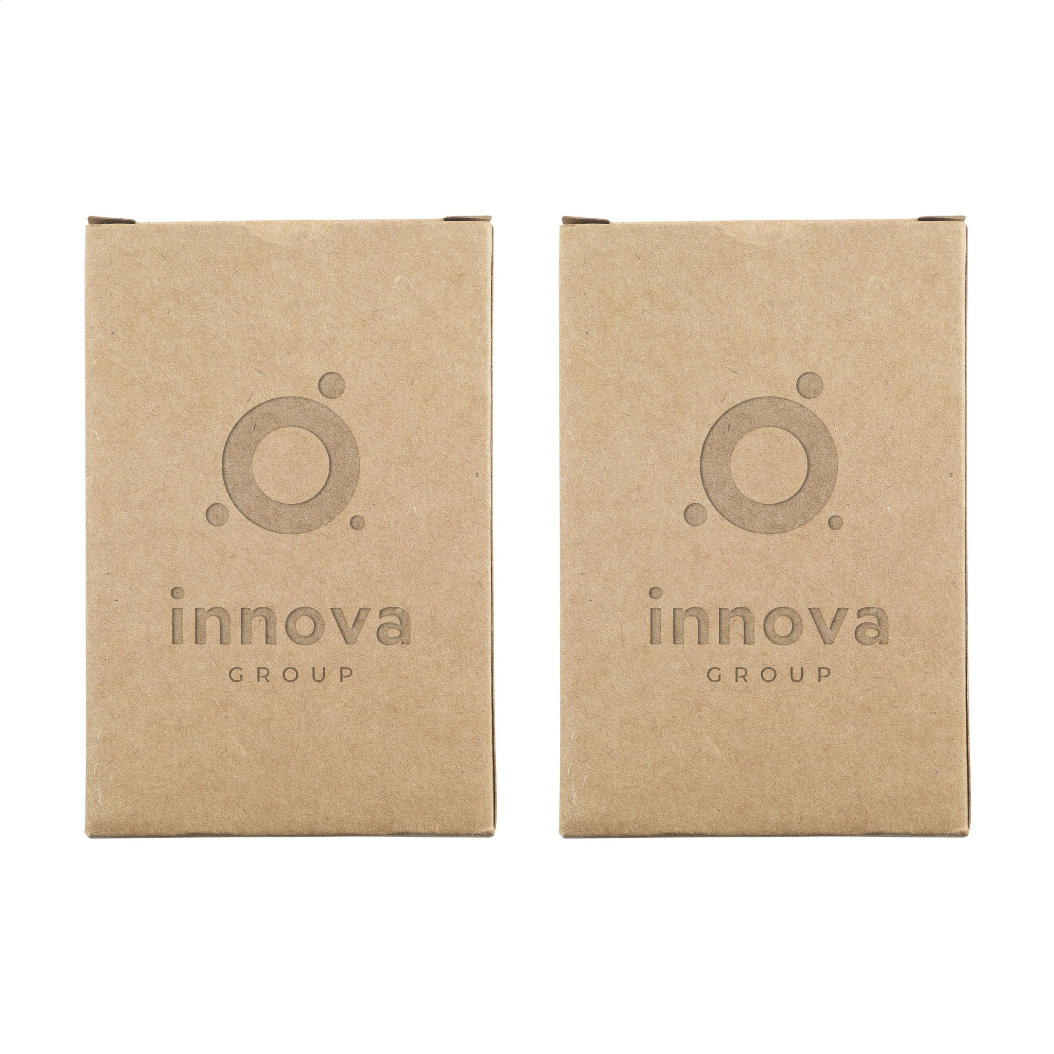 WoW! Två kortlekar gjorda av högkvalitativt återvunnet kraftpapper (250 g/m²). Detta spel består av 52 spelkort och 2 jokrar. Förvaras i en kartong av återvunnen kartong. Baksidan av dessa kort har alla samma standardbild. Dessa kortlekar levereras i en förvaringslåda i furu med ett skjutbart lock.