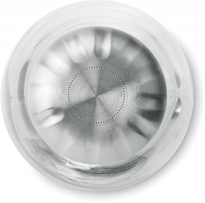 Drickflaska i glas med lock av rostfritt stål. Kapacitet: 650 ml. Läckagefritt.