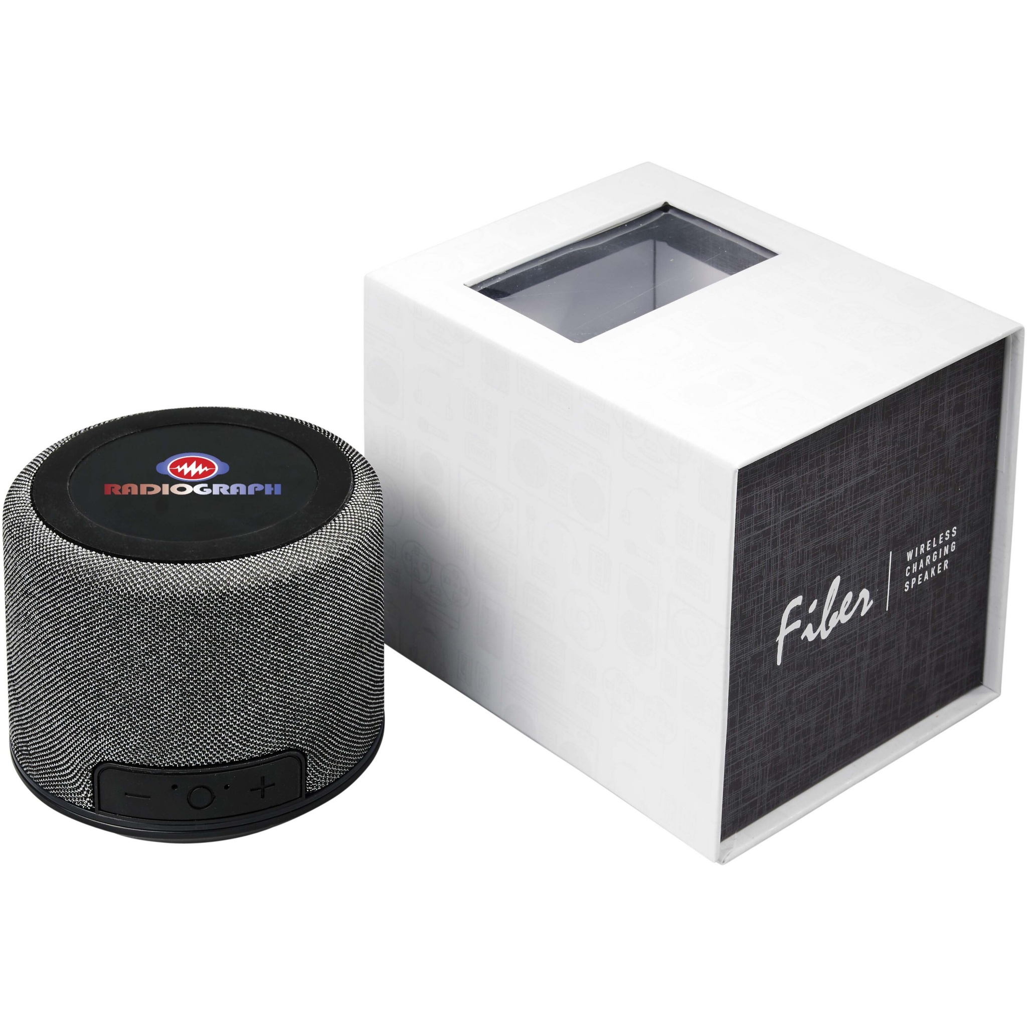 Fiber Bluetooth® -högtalare med trådlös laddning. Den ultimata teknikprylen! Fiber Bluetooth® -högtalare med trådlös laddning är perfekt för både kontoret eller hemmet. Högtalarens utgång på 3 W ger ett kristallklart ljud. Dessutom är högtalarens övre del en trådlös laddningsplatta! Den kan ladda alla trådlösa laddningsenheter som är kompatibla. Med det inbyggda batteriet på 1 200 mAh kommer den att fortsätta spela musik i över 6 timmar. En inbyggd musikkontroll och mikrofon för handsfree-funktion. En Bluetooth-räckvidd på 10 meter (33ft). Bluetooth version 5.0. ABS-plast och tyg.