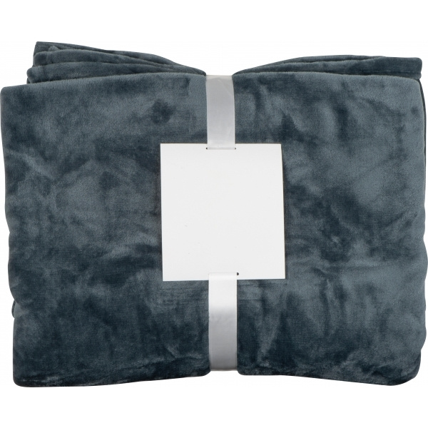 Filt av polyesterflanellfleece (vikt 230 g/m²) med en storlek på 200 x 150 cm. Perfekt för de kalla dagarna. Vi trycker din logotyp på banderolen.