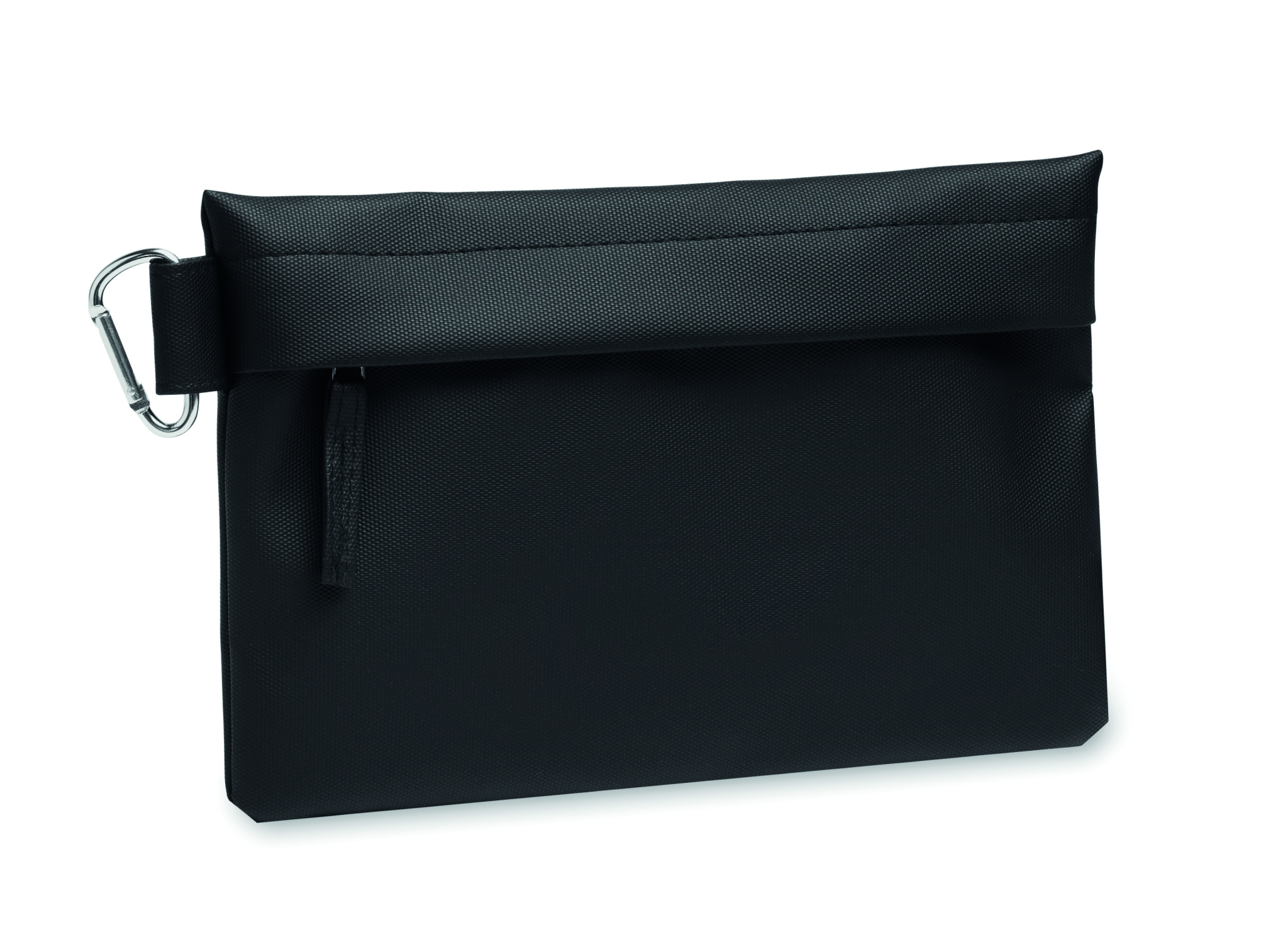 Bärbar förvaringspåse med PU-belagd 600D RPET polyester och stängning med dragkedja. Lämplig för tex datortillbehör, arbetsinstrument m.m.